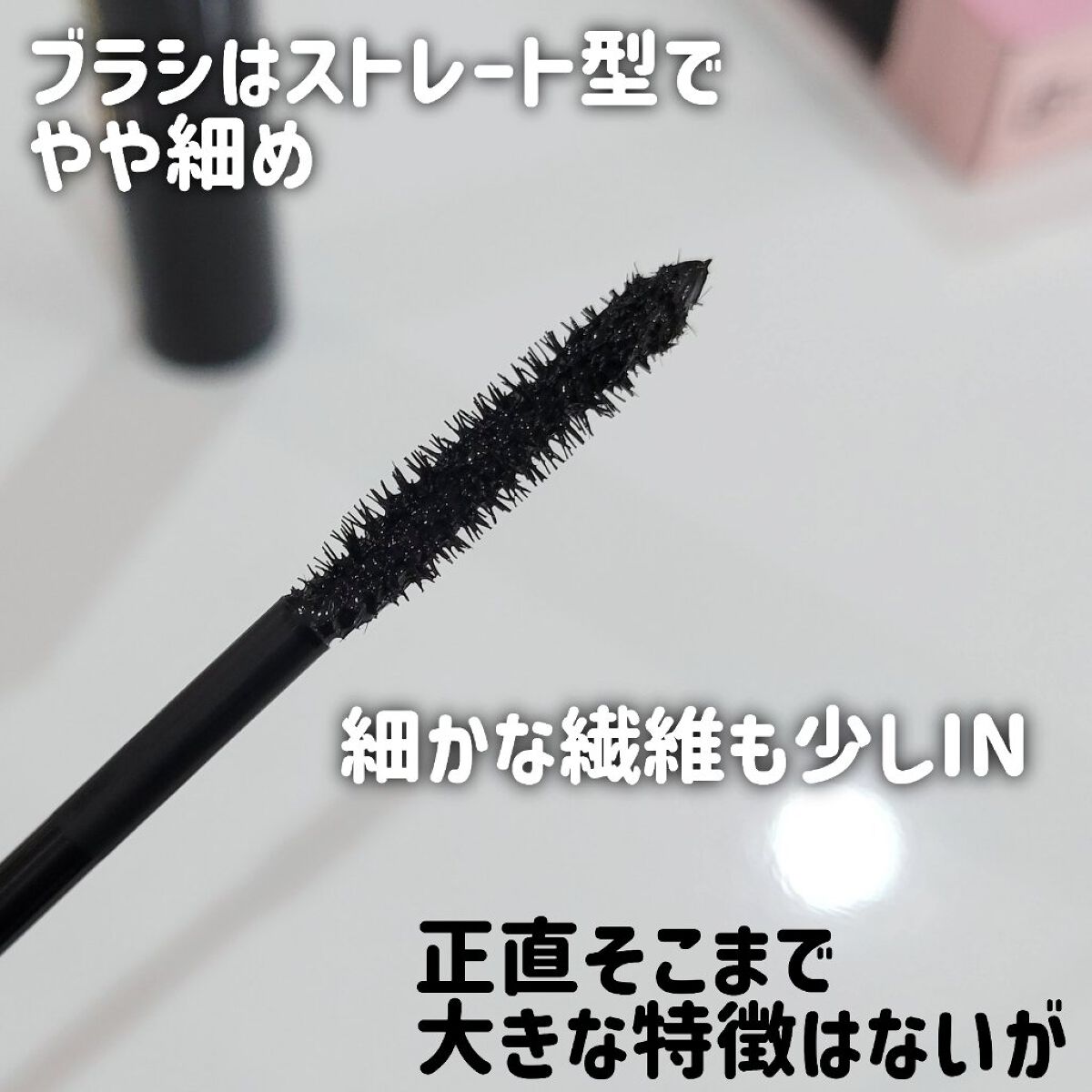 ・ストレートの細めのブラシが短いまつ毛もキャッチしてくれて、塗りやすかったです。 ・元からまつ毛長いよ!みたいに自まつ毛が延長されるっ😳❗️ ・ウォータープルーフ処方でパンダ目にならないのが嬉しい🐼手に塗った時も、水ではなかなか洗い流せなかったです❕でも、洗顔、お湯ではするりと落ちてくれるので繊細な目元に負担かからなくて良い👌 ・やっぱりブラックマスカラは目力アップしてくれて普段使いにヘビロテできるしピンクブラウンは遊びの時や、抜け感を出したい時にとっても使いやすいよ❣️