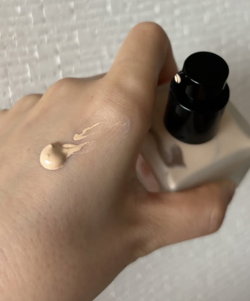みずみずしくてとっても伸びがいい◎ 少量でしっかり明るさのある仕上がりに✨️ 程よいツヤ感と肌悩みをふんわりぼかしてくれる感じ! スパチュラでもするすると伸ばしやすいみずみずしいテクスチャー。手でも薄く均一に伸ばしやすく、軽いつけ心地なのにカバー力高め!仕上がりの軽さも好き。 塗ってます感が苦手な私にもピッタリ! テカリやすい私は鼻だけ毛穴埋めプライマーとかテカリ防止下地併用するけど、本当に綺麗な仕上がりになる。