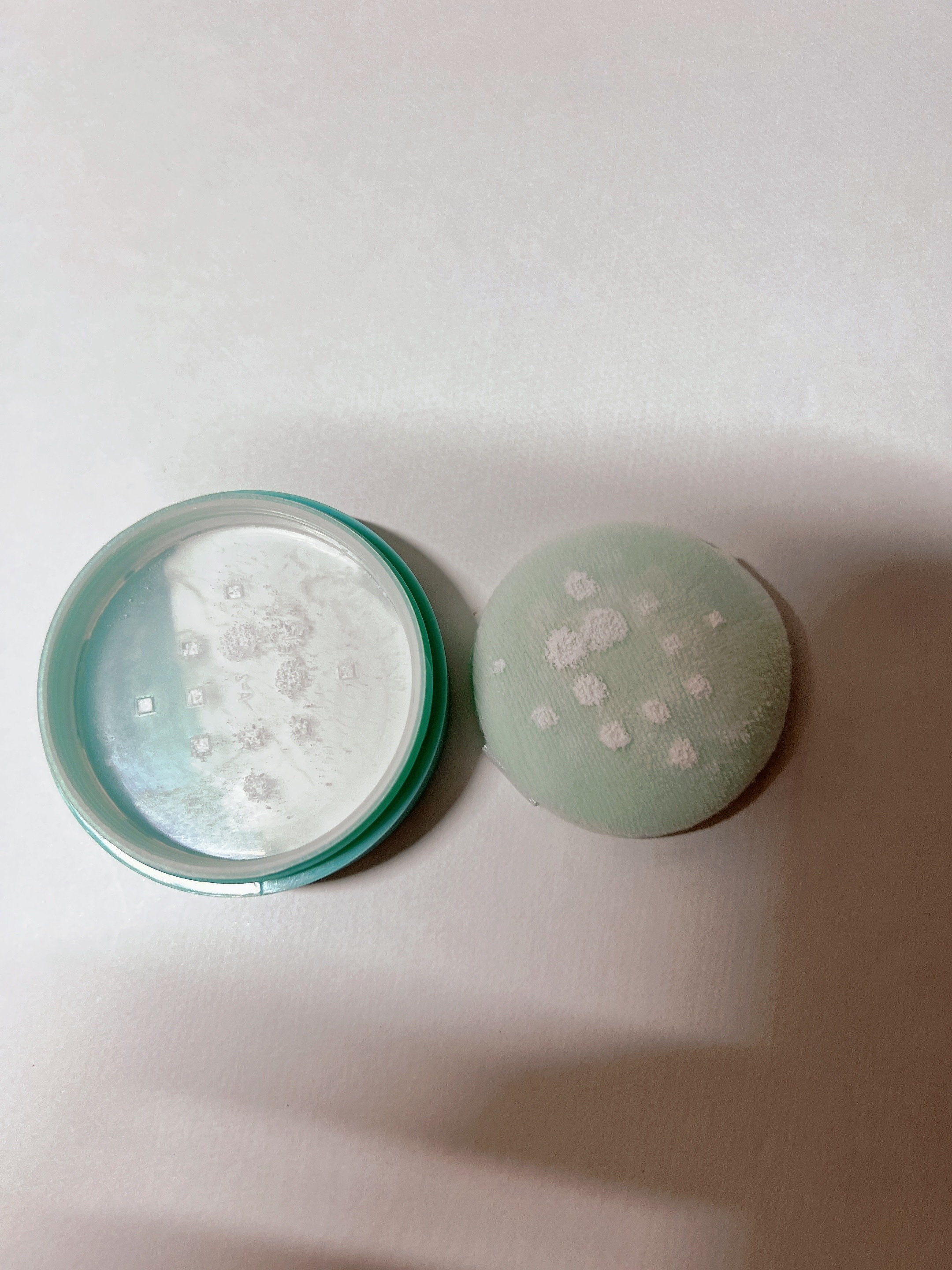 メイク後のテカリを抑えてサラサラにしてくれます◎ ポンポンした瞬間に、サラッサラの陶器肌になります✨️ 植物由来成分を配合した、無添加でシンプルな所が嬉しい♡ 小さくてコンパクトだから、持ち歩きも◎ 白浮きもないし、皮脂や汗を吸着してくれるのでお出かけする時はバックの中の必須アイテム😊 使った感じはどちらも、サラサラになってくれるので、いい物はいい!!
