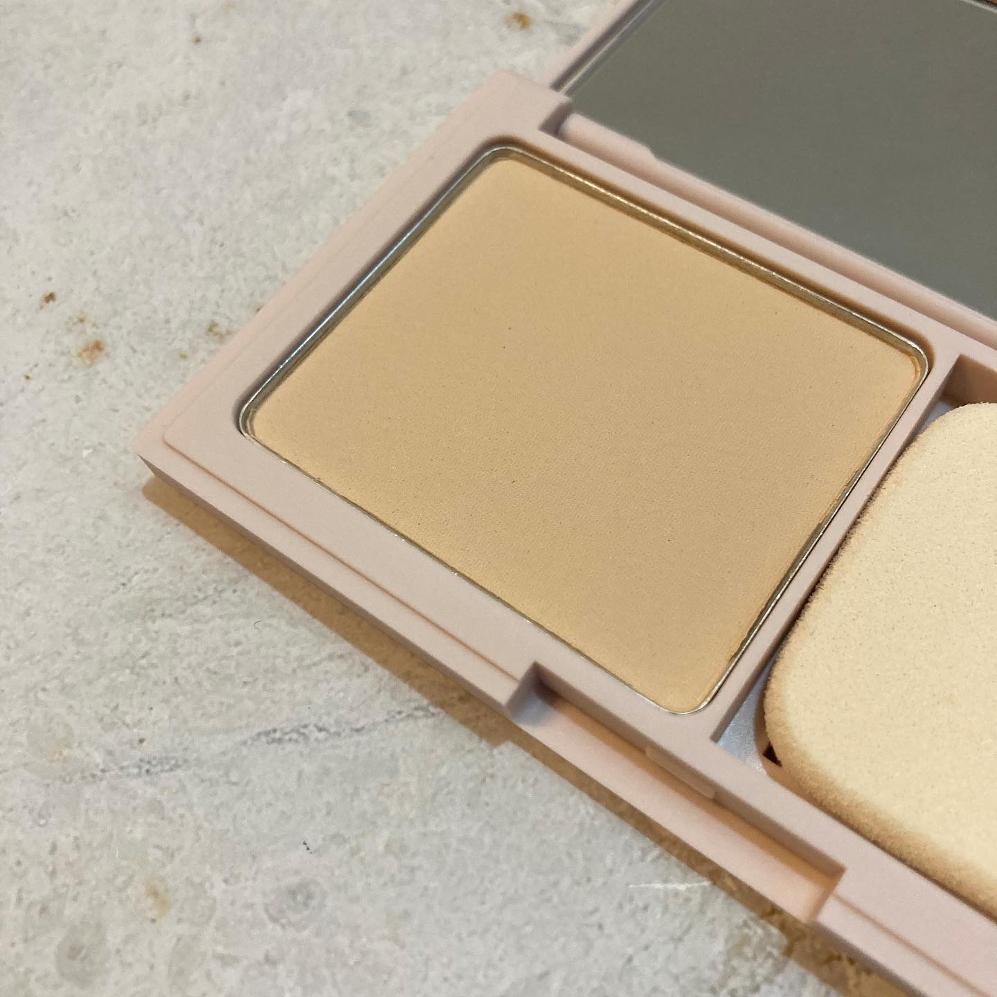 アイボリーの方が若干落ち着いたカラーで ベージュは少し明るめ。 でもどちらも肌馴染みが良いから 正直どっちでも使いやすい笑 かなり細かい粉質で 凹凸を自然にカバーして ふわっと仕上げ♪ 表面をさらっと仕上げてくれて 軽い着け心地🥰🫧 淡いピンクのケースも 推しポイント💕
