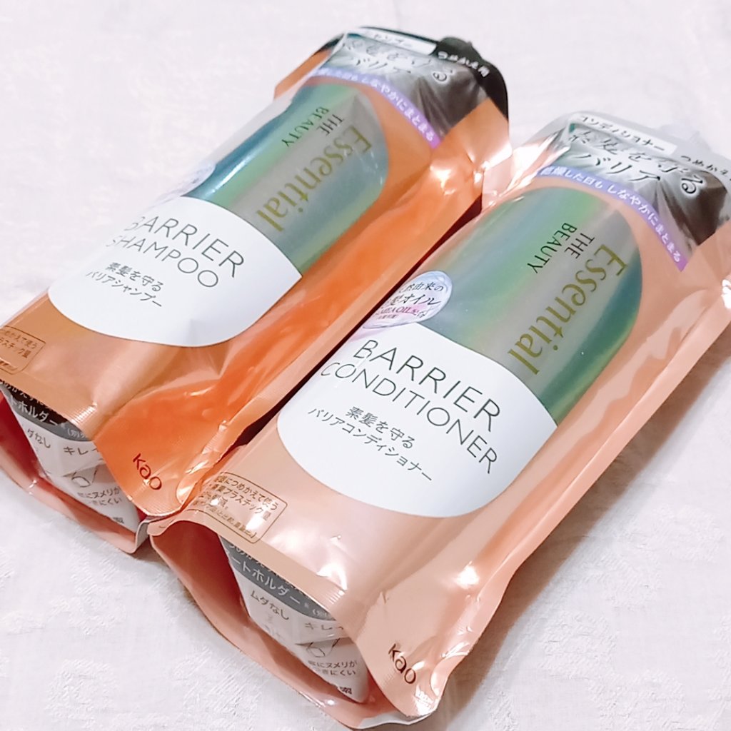 エッセンシャルザビューティ髪のキメ美容素髪を守るバリアシャンプー/コンディショナーしっかりとリピートしました!これ値段すごいバグってる🤯🤩700円前後で詰め替え用買えるだなんて🥸🥸🥸今まで使ってたジュレームも良かったけどこれはサロン専売品並み🤔🤔かずのすけさんも言ってたけどほんとにツヤツヤサラサラになる。コスパ最強😮😮😮#とっておきのツヤを教えて#生涯推しアイテム#ハイダメージ毛#ダメージ毛#お風呂のお供#アラフォー#ヘアケア#しっとりまとまる#工場勤務