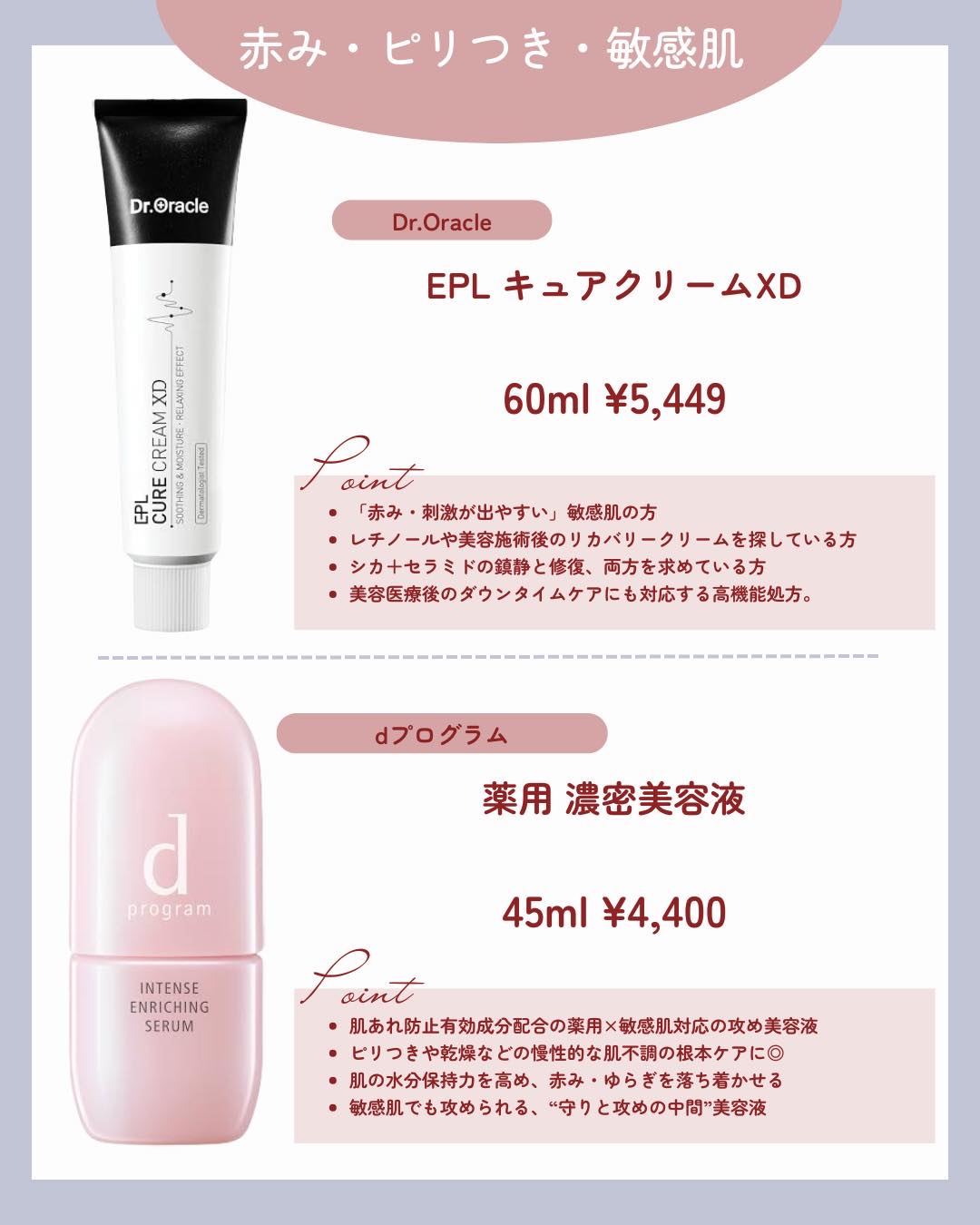 肌トラブル、全部1本でなんとかしようとしてない?😢日によって変わる肌の悩み。今日は「ニキビ・皮脂」「乾燥・粉ふき」「赤み・ピリつき」の肌トラブル別に、今話題のレスキューアイテムをまとめました🧴全て実際に使ってよかったもの&SNSでも注目されてるアイテムだけ厳選🤍▼悩み別おすすめはこちら▼【ニキビ・皮脂トラブル】・SHIMBIMETHODアゼライン酸15%・トゥヴェールGAローション【乾燥・粉ふき・ゴワつき】・AESTURAアトバリア365・ラロッシュポゼダーマアレルゴ【赤み・ピリつき・敏感肌】・ドクターオラクルEPLキュアクリームXD・dプログラム薬用濃密美容液肌状態に合わせて、今日は何を塗る?自分の肌に“ちゃんと向き合うスキンケア”をはじめよう🫶👩⚕️気になるアイテムがあればDMで相談もOKです📩#美容垢#美容情報#自分磨き#美白ケア#美白#美肌効果#美肌になりたい#美肌習慣#美肌レシピ#美肌ケア#美肌#スキンケア用品#スキンケア紹介#スキンケアマニア#スキンケア#美容好きさんと繋がりたい#美容#敏感肌#敏感肌でも安心#敏感肌スキンケア#敏感肌ケア#ニキビケア#乾燥肌#乾燥肌ケア#アゼライン酸#肌荒れ#肌荒れ対策
