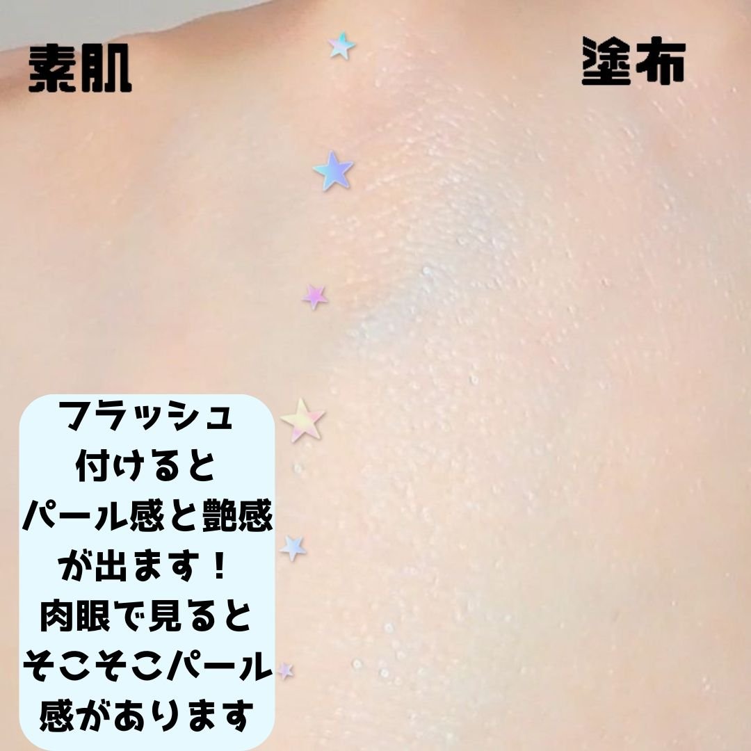 出したてはそれなりに青いのに塗ると青みがほとんど消えます! 重ねづけすればある程度は色味出ると思いますがそれでも薄め! あくまでも日焼け止めという立ち位置なのでこのくらいで私的にはちょうどいいのと、イエベの私でも全くといっていいくらい違和感無く使えるのは嬉しい🥰 ギラギラまではいきませんが、パール感がけっこう出るのでUVカットも踏まえて日差しの関係でこの時期から夏場は大活躍してくれると思います✨ 動画にするとパール感と艶感で塗っているところと素肌の境界けっこうわかるかなというかんじです! あとは匂い!このシリーズ特有のいい匂いがこの日焼け止めでもしっかり堪能出来ます💖 この匂い大好きなので、2024年分のも購入しています◎