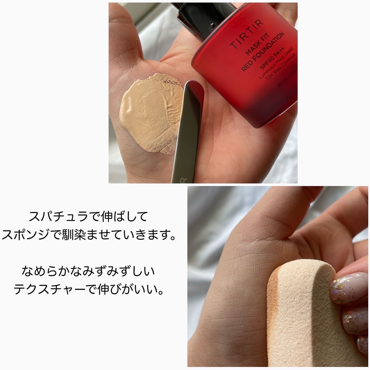 ✎︎______________...クッションも良いけどリキッドも良かった♪☑︎TIRTIRマスクフィットレッドリキッドファンデーション均一で微細なパウダーが肌にピタッと密着し、まるで本来の肌のような滑らかなツヤ肌仕上げに。潤いに満ちたつるんと上品な肌つやを演出します。付属のスパチュラがカッコいいし、使える!リキッドを手に出したら、スパチュラを使って外側に向けて広げていきます。均一に伸ばせたらスポンジで叩き込むように馴染ませていくと細かな部分も綺麗な仕上がりに。リキッドは苦手なんだけど、みずみずしくて軽い仕上がりにびっくり!厚塗り感はないのにしっかりカバーできた🥹クッションよりしっかりベースメイクを作り込みたい人、メイク持ちが気になる人はこちらのリキッドもおすすめだよ〜🙆♀️...#TIRTIR#ティルティル#マスクフィット#マスクフィットシリーズ#最強ベース#マスクフィットレッドリキッドファンデーション#韓国コスメ#韓コス#オルチャンメイク#sponsored