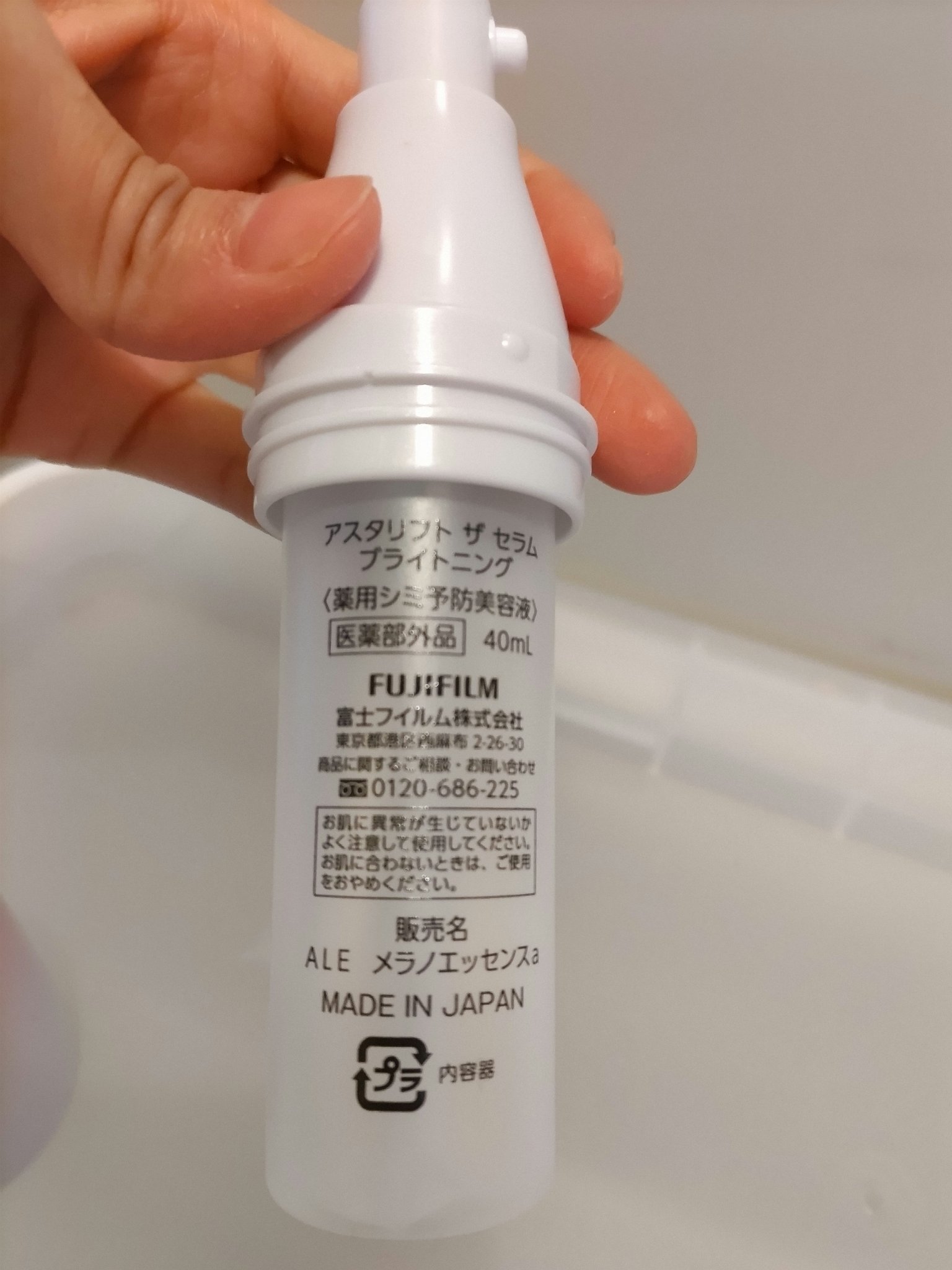 アスタリフトザセラムブライトニング試供品(0.4mL)────────────(約50日分 ¥7,150/40mL)•肌荒れ•あれ性を防ぐ•メラニンの生成を抑え、シミ•そばかすを防ぐ以下個人の感想です。すっきりした甘みの爽やかな香りがします。肌にハリが出た感じがしました。シミに関しては、使い続ける必要があると思うので特に実感は無いです。シミ予防を考えた方が良いかな〜と思いつつまだそこまでお金を出す勇気がないです。もう少し関心を持ったときに使い続けてみたいです。────────────#シミ予防#薬用シミ予防美容液#アスタリフト#ザセラムブライトニング#スキンケア#美容液