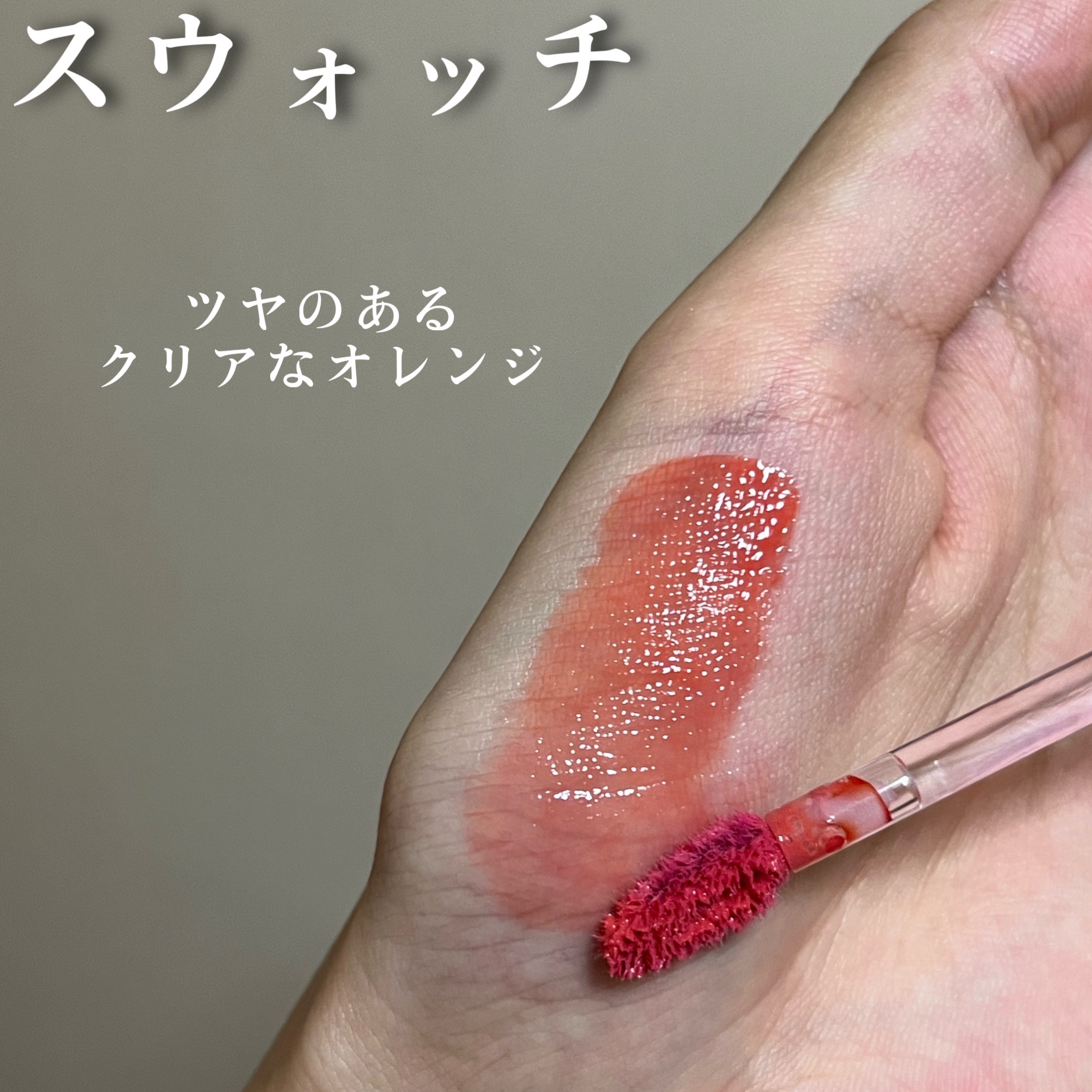 ラメ感がとってもかわいい...❕ うすーくオレンジが色づいてくれます👍🏻 発色がとっても良いです❕ですが濃くつきすぎることなく、ぽわっと優しく発色してくれます🫶🏻 テクスチャーは水のような感じですが、しっかり密着してくれます❕