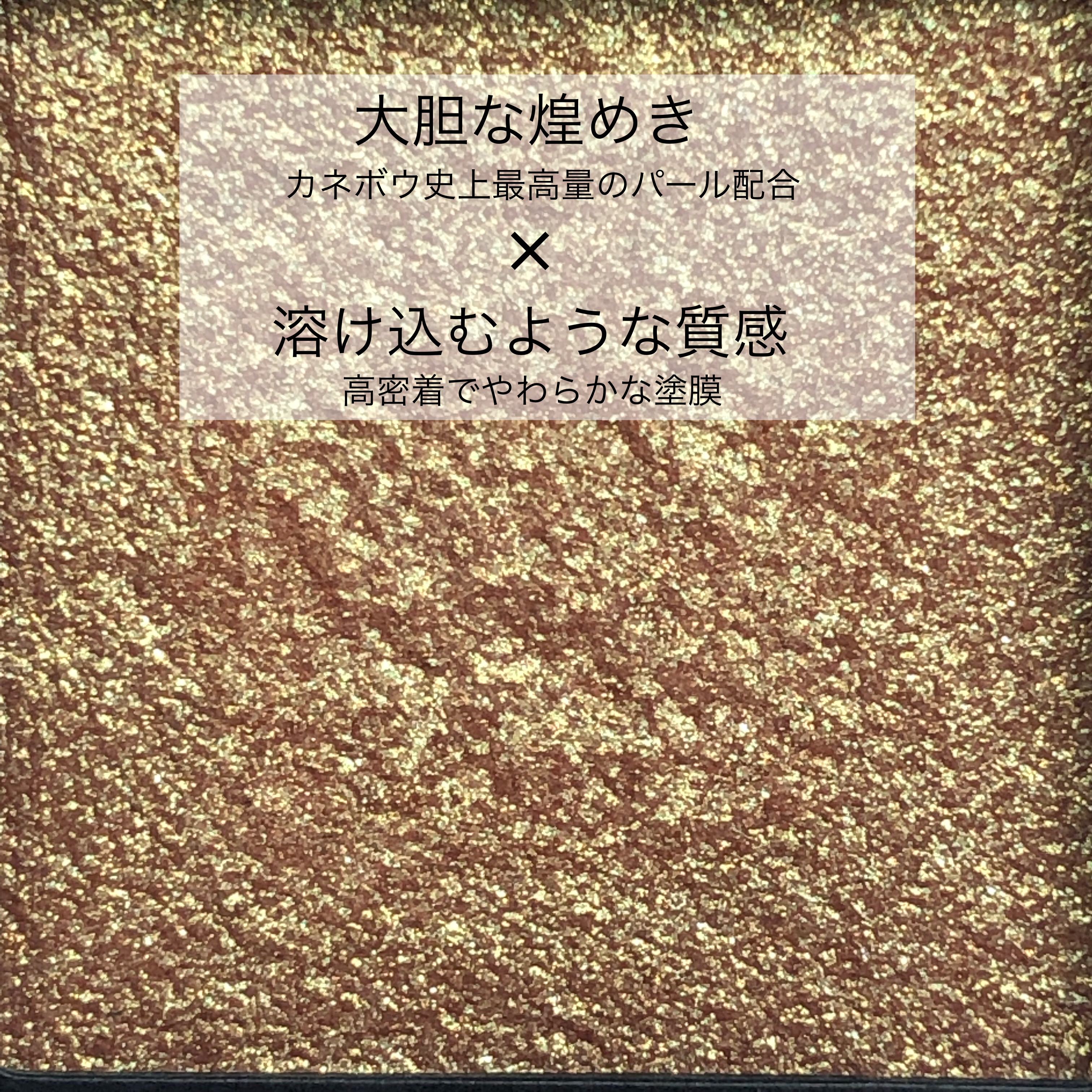 ザクザクラメが美しい!✨ カネボウ史上最高量のパールが配合されていながら、高密着でやわらかな質感なので指で簡単ひと塗りできる☝️ まぶたに乗せると、意外と赤みのあるベースカラーで肌馴染みも良く使いやすい 角度によって輝き方が変わるので、単色使いがお気に入りです 紙パッケージながら、高級感のある見た目と耐久性のある作りになっています カネボウのメイクは全体的にワクワクするカラーが多くおすすめ💄