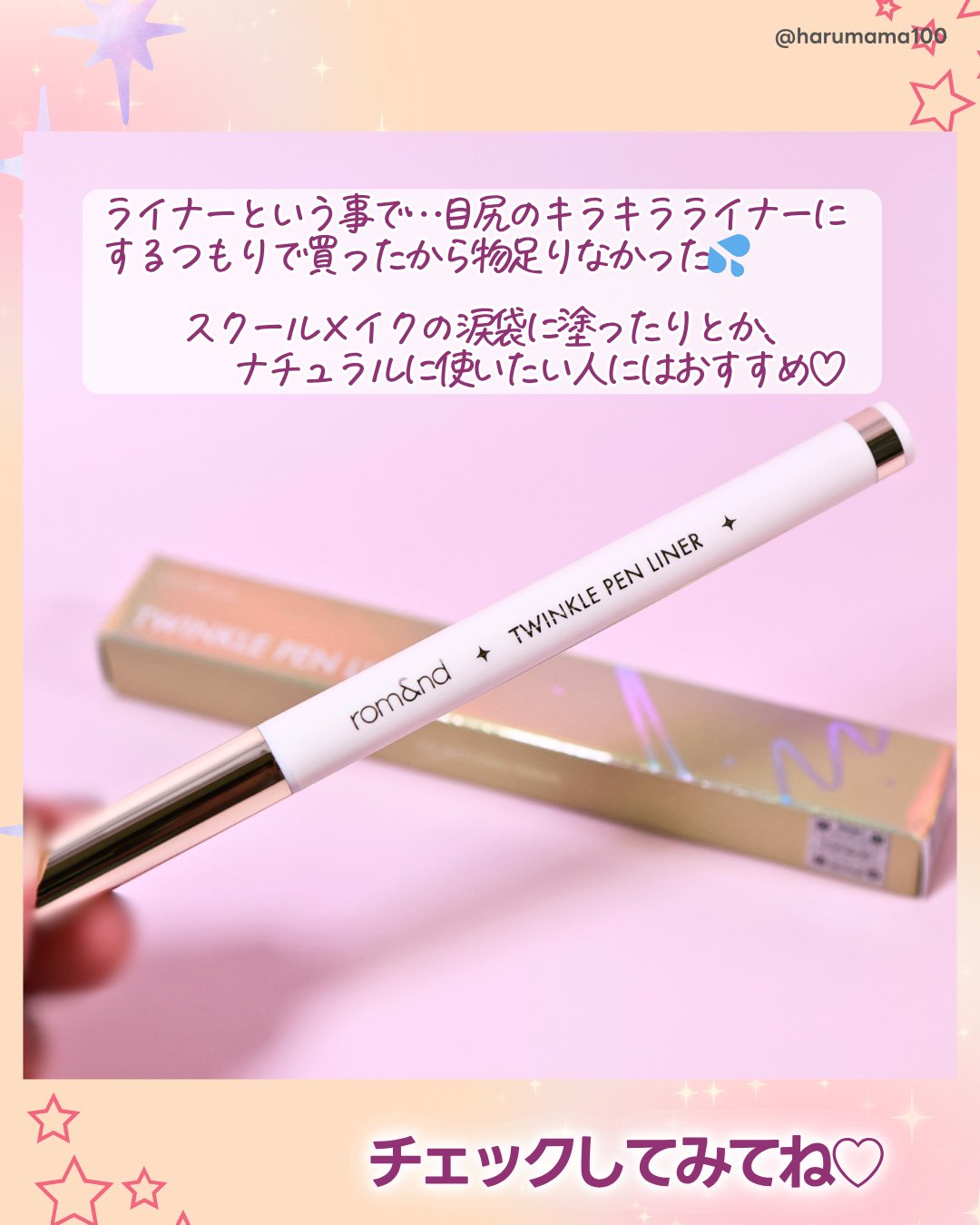 トゥインクルペンライナー #02¥1,4303回くらい描かないとあまりわからなかった…ナチュラルにしたい人には向いてるかもしれないです。#rom&nd#ロムアンド