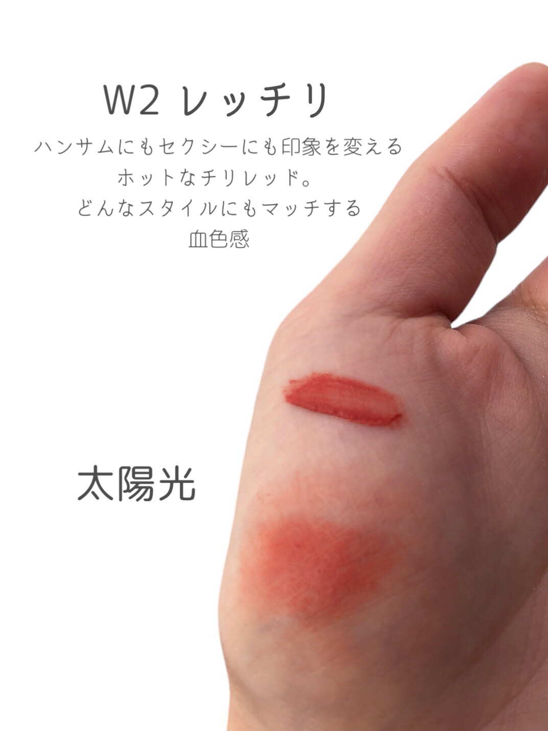 W2レッチリ ハンサムにもセクシーにも印象を変える ホットなチリレッド どんなスタイルにもマッチする血色感 この色はぽんぽん塗りより、しっかり塗った方が顔にハマる🙌 ティッシュオフ後も しっかり残るから、 ちょっとナチュラルにしたいなら ティッシュオフ後の色でも可愛い! エア泥リップ 1枚目の上の方に写ってるやつ😭 よく見るINTO Uより、軽くて塗りやすいし乾燥しない! こっちの方が好きかも…