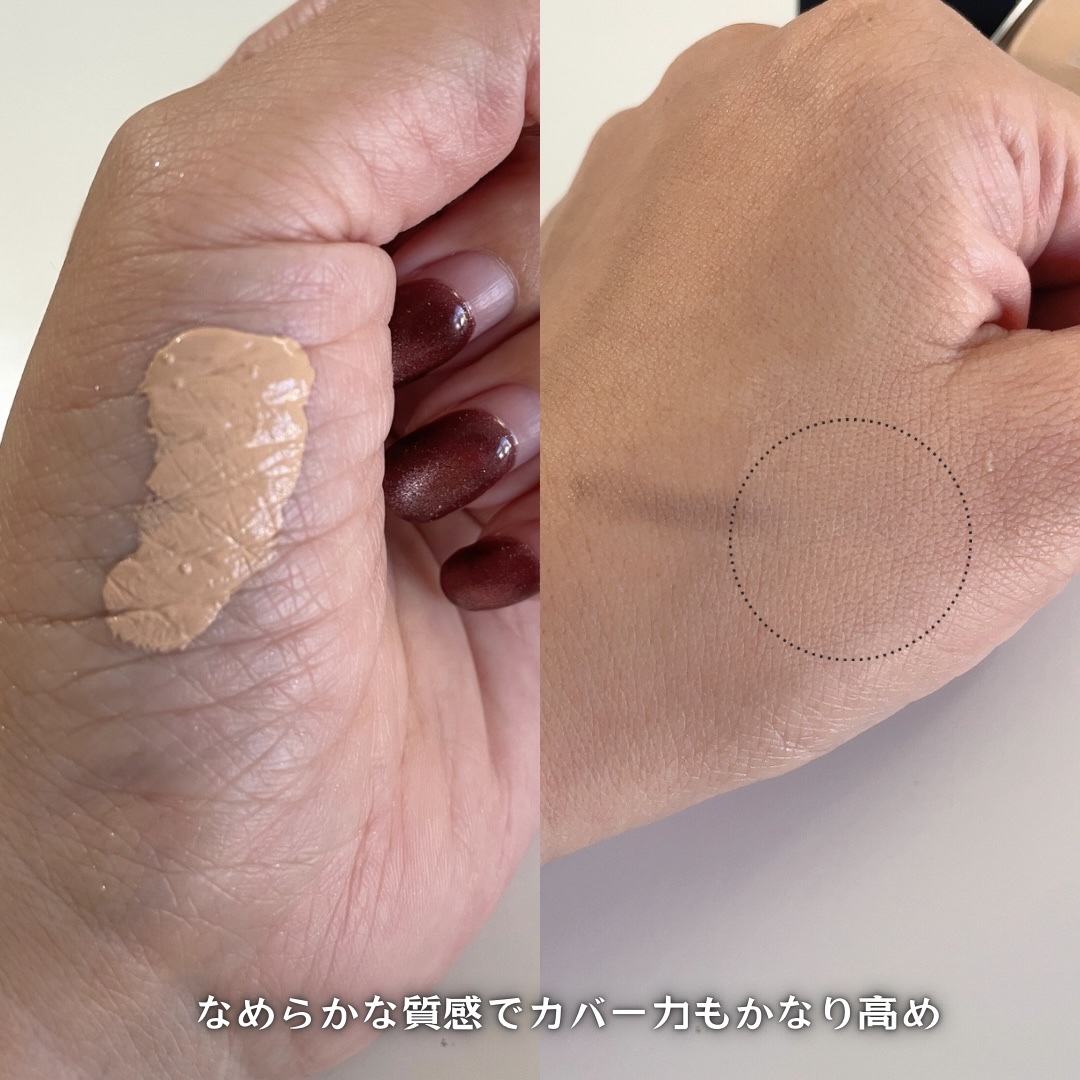 ブランドと値段だけじゃなかった!!ちゃんとよかった!😛カバー力が高いのに厚ぼったくならず、肌にスッと溶け込むようになじみます。ヨレにくく、長時間きれいな状態が続くのが良い🙂✨