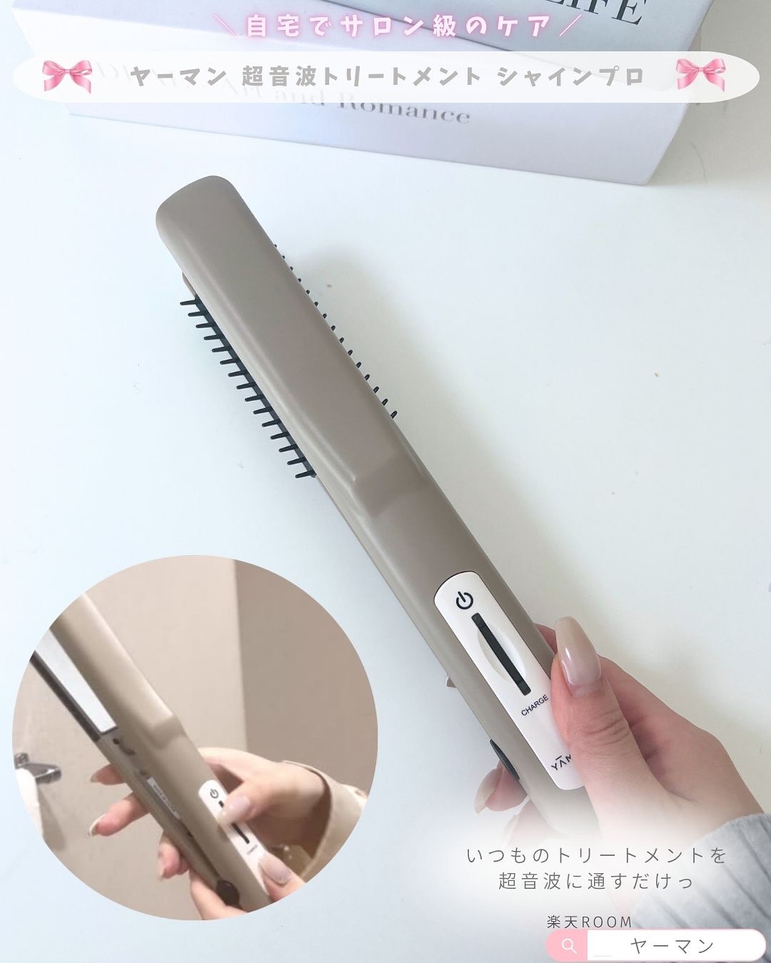 YAMANシャインプロ自宅で手軽にヘアケア♡超音波によってトリートメントの浸透を高めてくれるのでおうちで手軽にサロンケアができるのはうれしい⟡˖·お風呂場での使用が可能で週に1~2回のお手入れできるよ♡お手入れしたあとはフワフワのサラサラ〜♡...