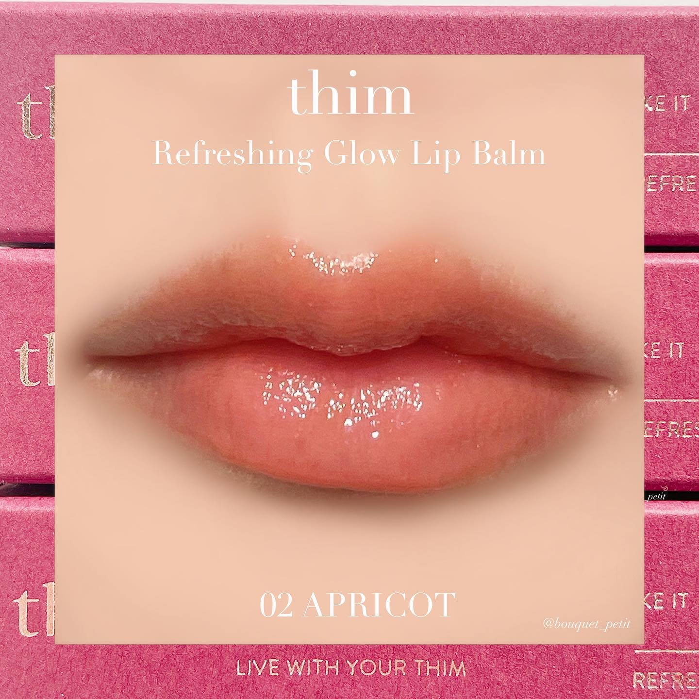 ☽𓂃꙳⋆thimリフレッシンググロウリップバームガラス玉のように透明感があって、色づきながらリップケアも叶えてくれるカラーボリュームリップバーム💄01DOLCEPINK02APRICOT03PURERED乾燥した唇、気になる唇のシワに潤い与え...