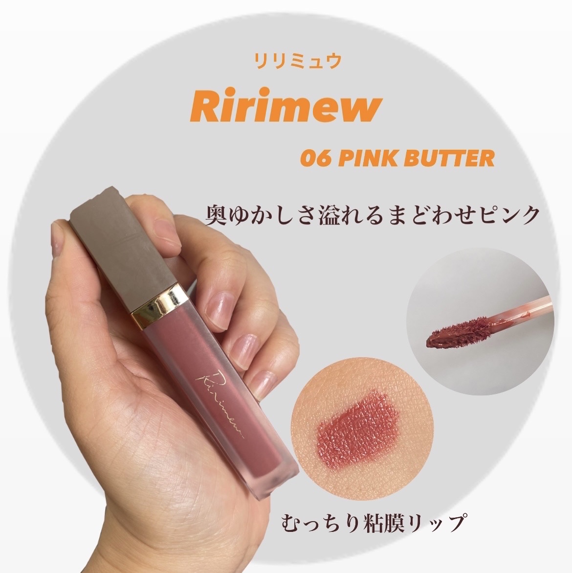 ピンクバターのカラーは私的にはピンク!ってかんじよりもピンクに赤を足したようなカラーに見えます テクスチャーは、しっかり濃厚、でも重たすぎず◎ こちら発色が、すごい高発色です!綺麗に色味がでます ツヤ感もでるので、塗りたてはむっちりリップに リリミュウは入手困難品が多いですがこちらのリップはプラザやロフトなどでよく見かけるようになったので気になる方はぜひぜひ☺️❤️
