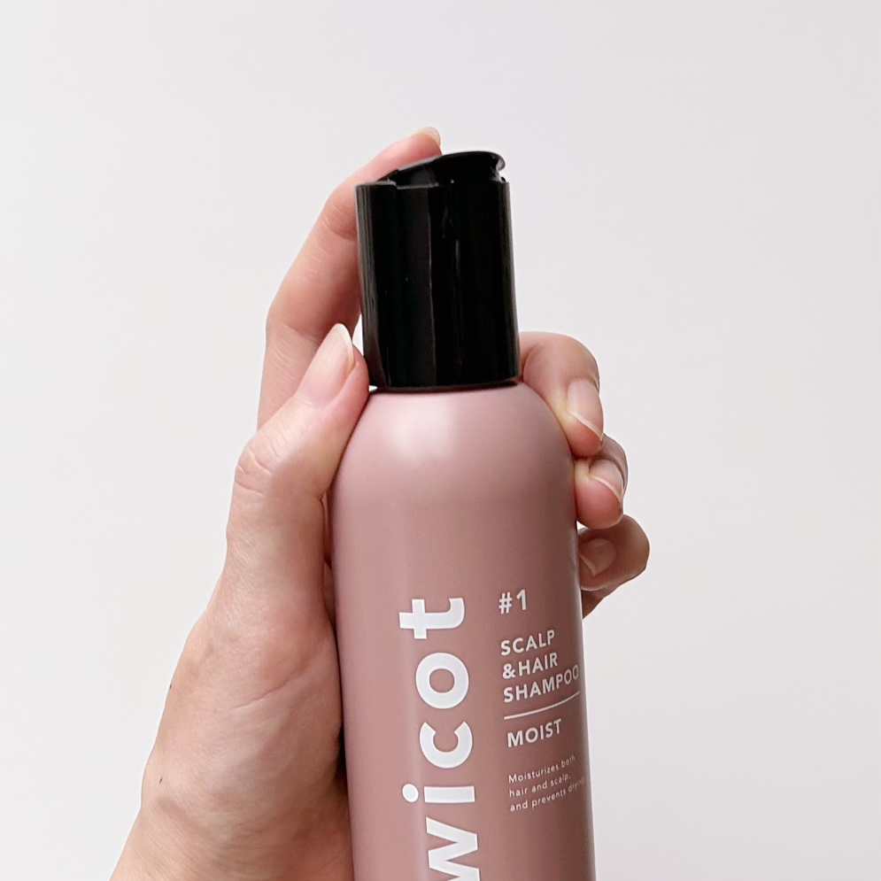 ☑シャンプー#ウィコット@wicot_official.#スカルプ&ヘアシャンプーモイストa.わたしの髪に、いいことやわらか頭皮、まとまりのある髪へ.✔️乾燥✔️保湿✔️ツヤ.容量:200mL価格:3,300円(set:6,050円).*自然...