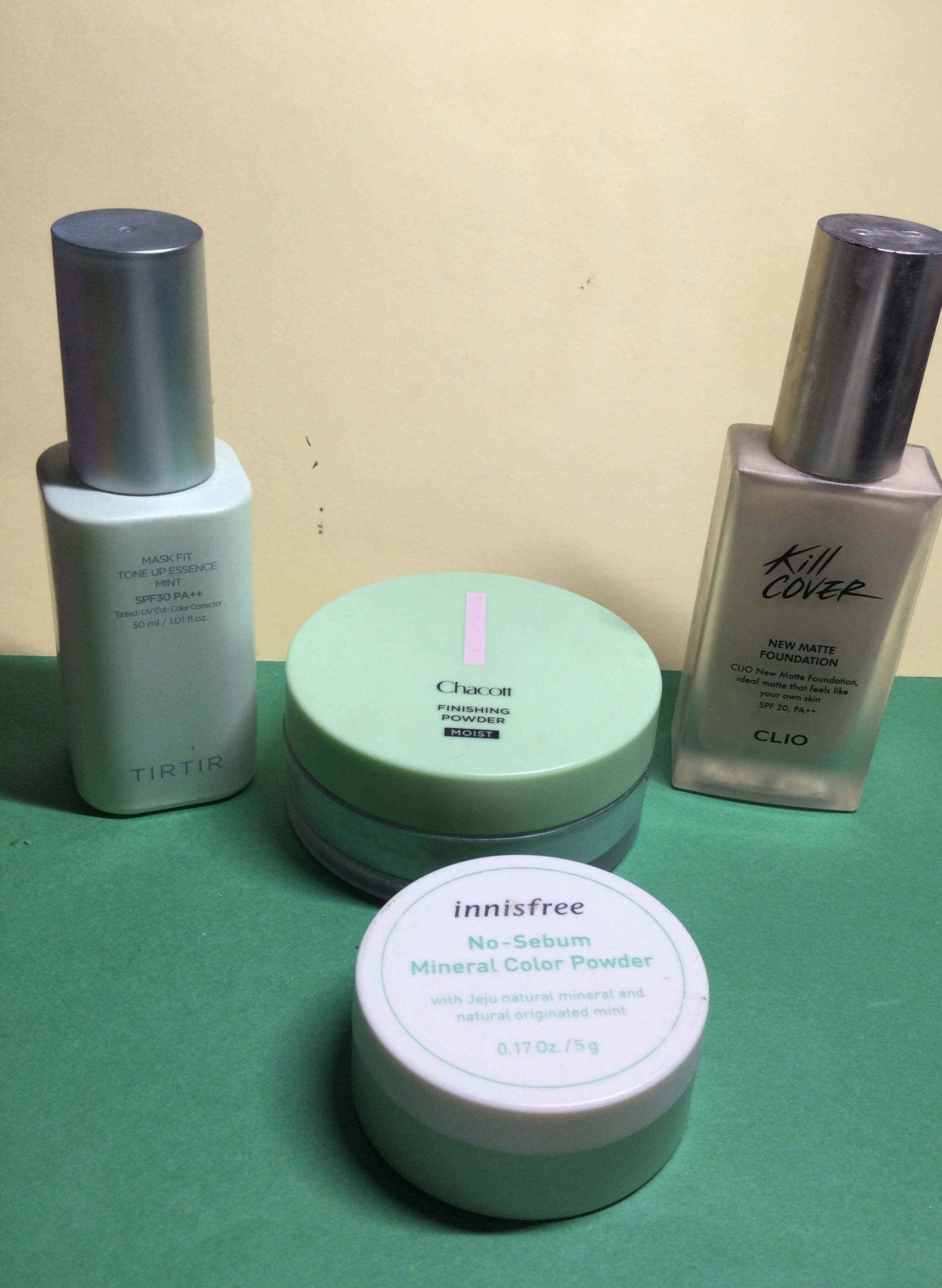 本日のメイク 2.3鮮やかなグリーンプリマヴィスタスキンプロテクトベース<皮脂くずれ防止>SPF50メロンチャコット・コスメティクスフィニッシングパウダーモイストC769クリアグリーンinnisfreeノーセバム ミネラルカラーパウダー02グ...