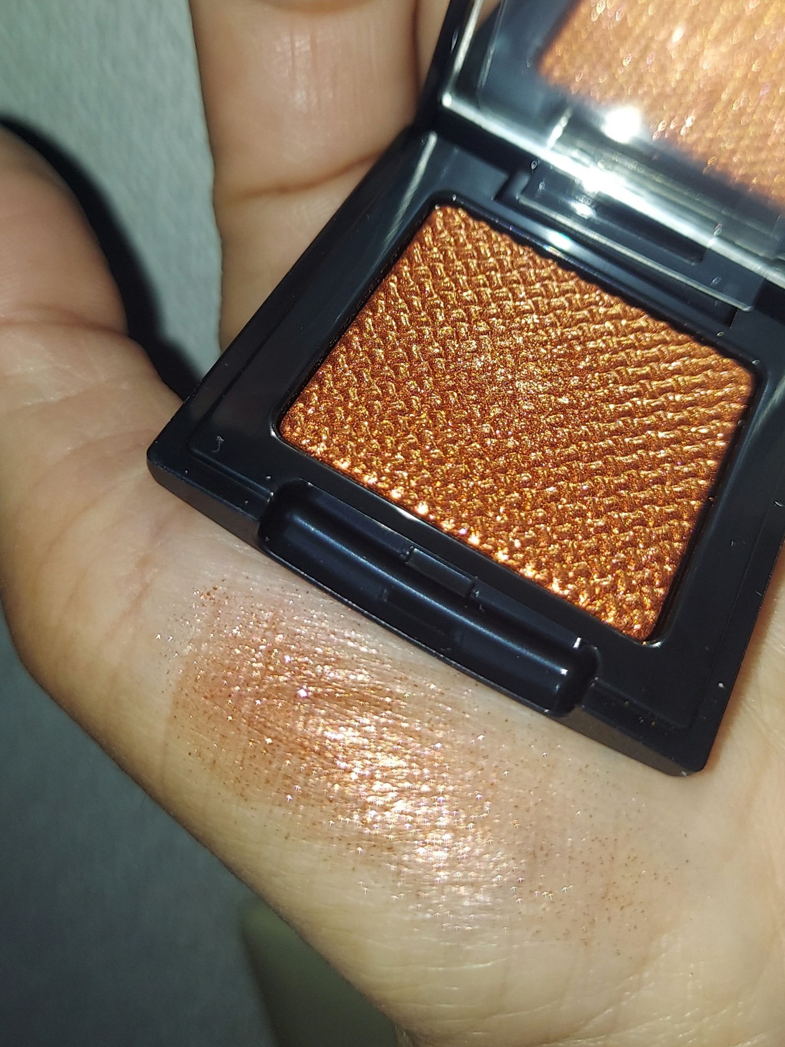 このアイシャドウは発色もよく、ラメも綺麗で目元に輝きを与えてくれます。 単色使いでも一気に目元が華やかになり、また他のアイシャドウと重ねても濁ることなく綺麗に発色してくれます。 筆でアイシャドウをとって目元につけるとラメが違うところについてしまうので、指の腹につけ目元につけるのがオススメです!