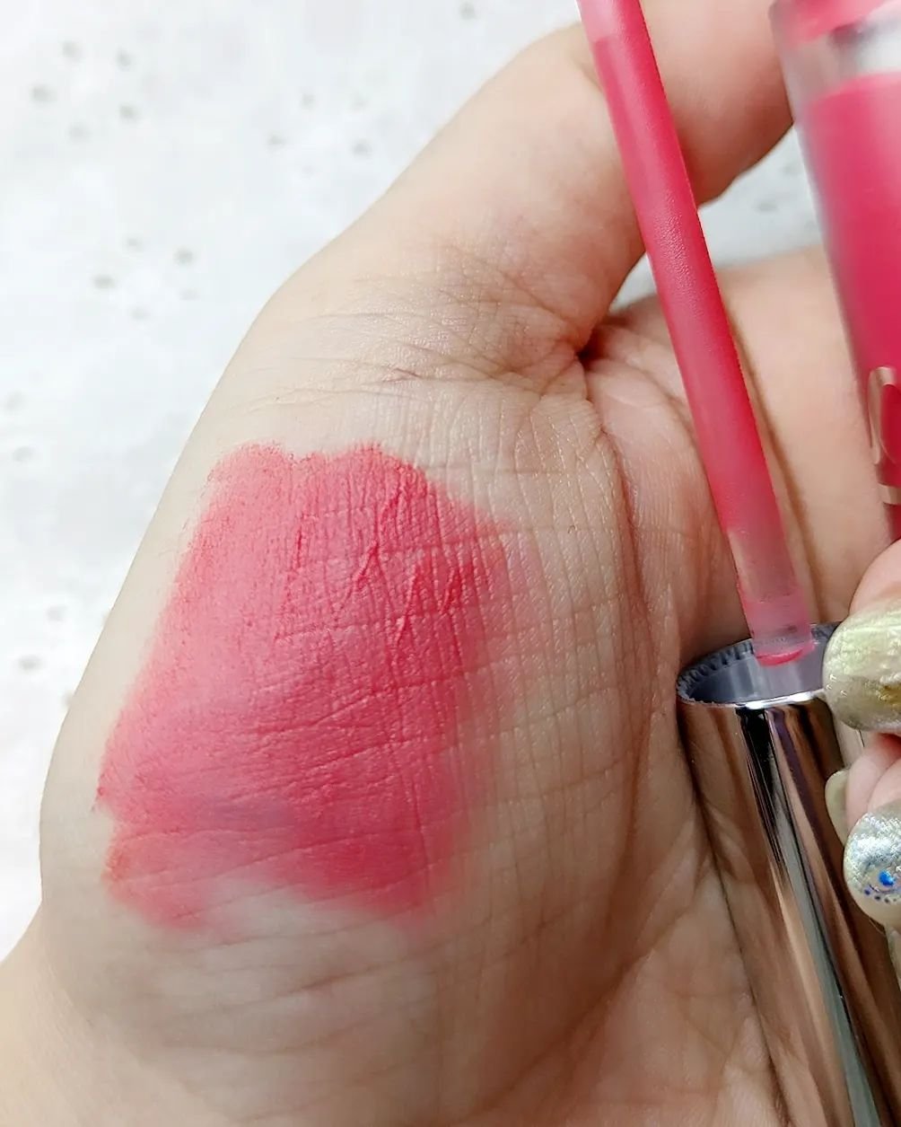 NaeTIS201Wednesdayコットンローズ明るめのレッドですが、マットのほわっと感が派手になりすぎず血色感を🆙してくれます❣️斜めのアプリケーターが珍しい形をしていますが、絶妙に唇にフィットするんです❣️マットティントです💋スルスル塗ることが出来て、すっごく軽い!私は唇が乾燥しがちなのでティントを塗る結構前に保湿をして拭き取ってからこちらのティントを塗っていますが、縦ジワもあまり目立たずほわっと柔らかい仕上がりになります🥺❤パーソナルカラー関係なく使えるカラー展開をしているのでオススメです✨Qoo10で購入出来て’naetis’を検索すると出てくるので要チェック✔#naetis#ナティス#韓国リップティント#韓国コスメ#韓国化粧品#Qoo10コスメ#キューテンジャパンティント#キューテンジャパン#フェアリーコアテーブルラティント#持続力のあるティント#韓国リップ#ベルベットティント#チュジヌティント