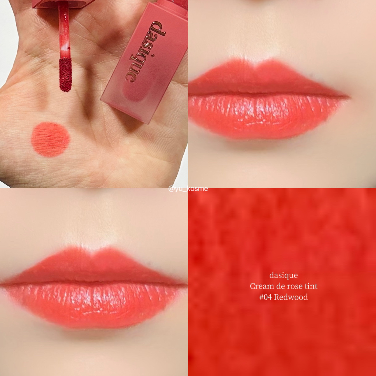 dasique初のスペシャルブックが登場! こちらは現品かな? dasiqueのクリームドゥローズティント 04 Redwoodです👌 バラの花びらのようなシルキーなセミマットのリップ! 血色感のあるあたたかみのあるリップで、とっても春らしい色味です🫶 セミマットですが乾燥もあまりきにならず、綺麗な仕上がりのままキープしてくれます👍 前回の投稿で詳しく色合いなどレビューしてるので、是非参考にしてみてください🫶