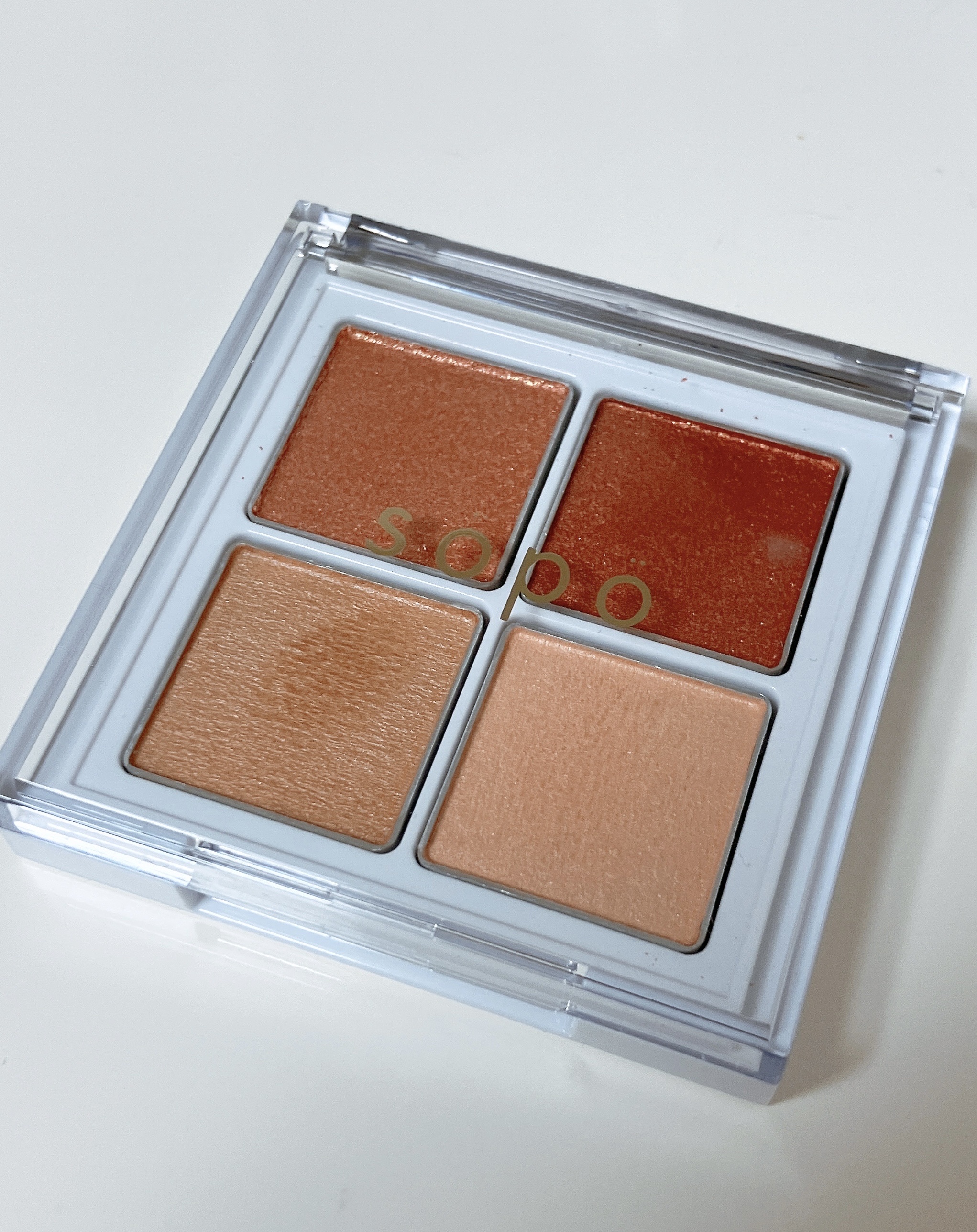 【#SOPO】#sopoアイパレット04#ダズルベージュ自然な陰影を引き出す下段2色のマットな透け感ベージュがポイント。左上には温かく輝くコーラル×ゴールドのラメ、右上には繊細なパールを配置し、様々な質感と色の組み合わせが楽しめるアイパレットです!抜け感のあるオレンジ~コーラル寄りのヌーディーベージュで、ナチュ盛り確定の美人盛りパレットです🫶同系色でまとめられているのに、しっかり盛れるので、他にはないアイシャドウだと感じました!オレンジ・ベージュアイシャドウ好きの方はぜひ試してみてください!