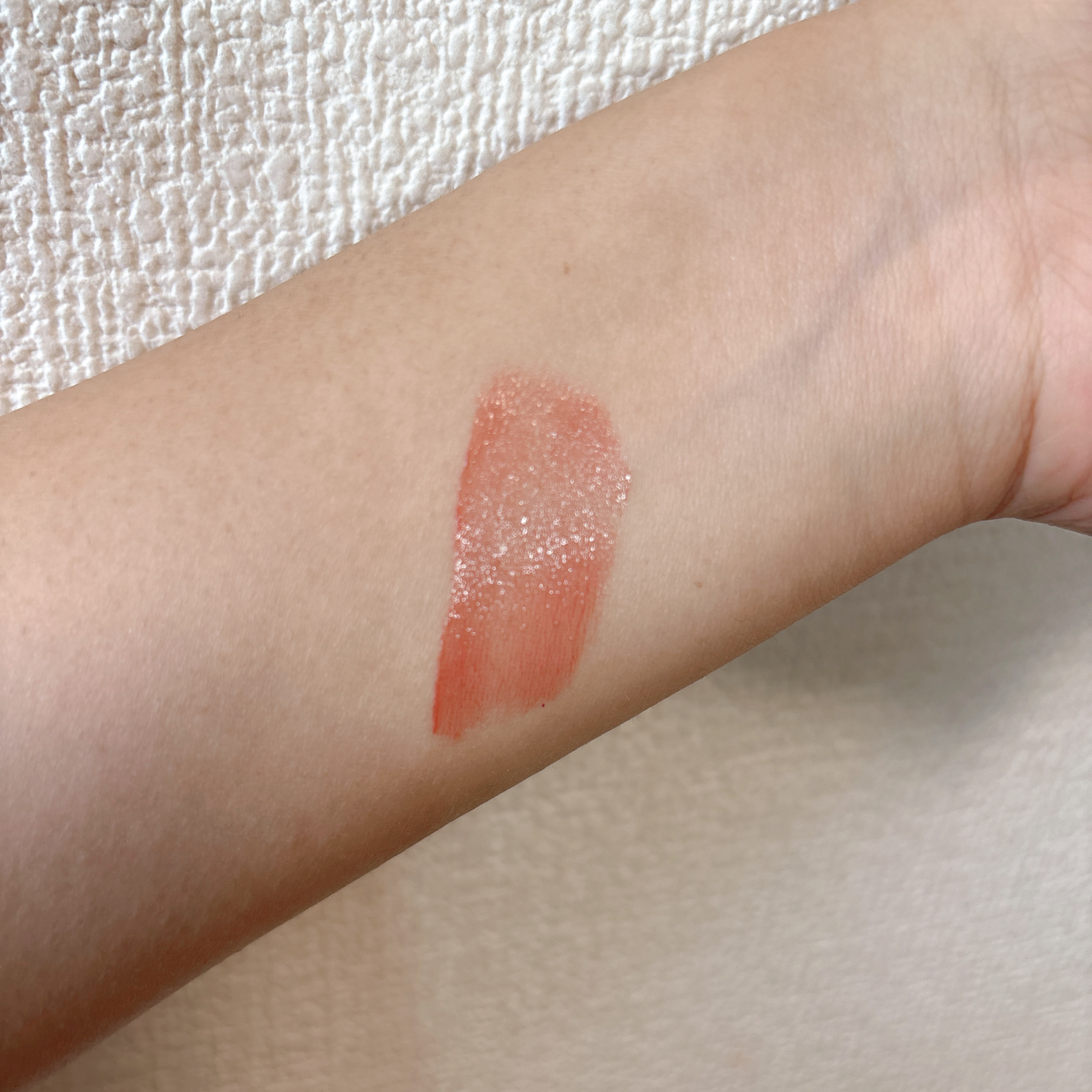 私も、早押し待機しても完売で買えず…😭 こちらは違って、みな実限定色と同じく、きちんと粘膜ピンクに発色♡ イエベさんは、むしろこちらがさらになじむかも♡ 時間がたつと、塗りたてコーラルからほんのりピンクが強まって、またかわいい♡
