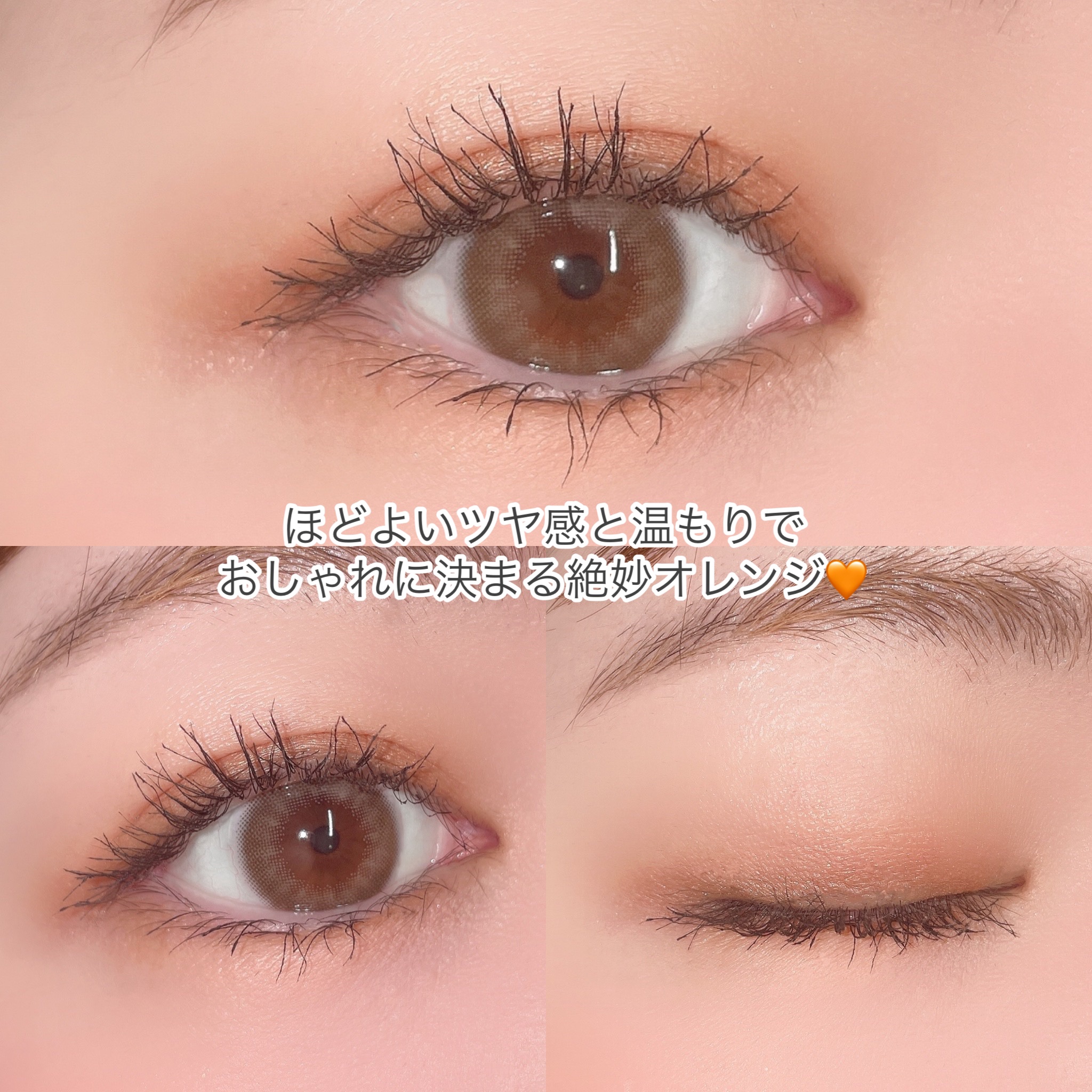 オレンジだけどパキッとしすぎなくて、ほどよいくすみのあるカラー。 フレッシュすぎるオレンジは使いにくいなっていう人にもとっても使いやすい配色だと思います♪ 質感やパール・ラメ感はもう言わずもがな。素晴らしい♡ このパレット本当好き!もう少し集まったらまとめてレビュー作りたいなぁ( ¨̮ )