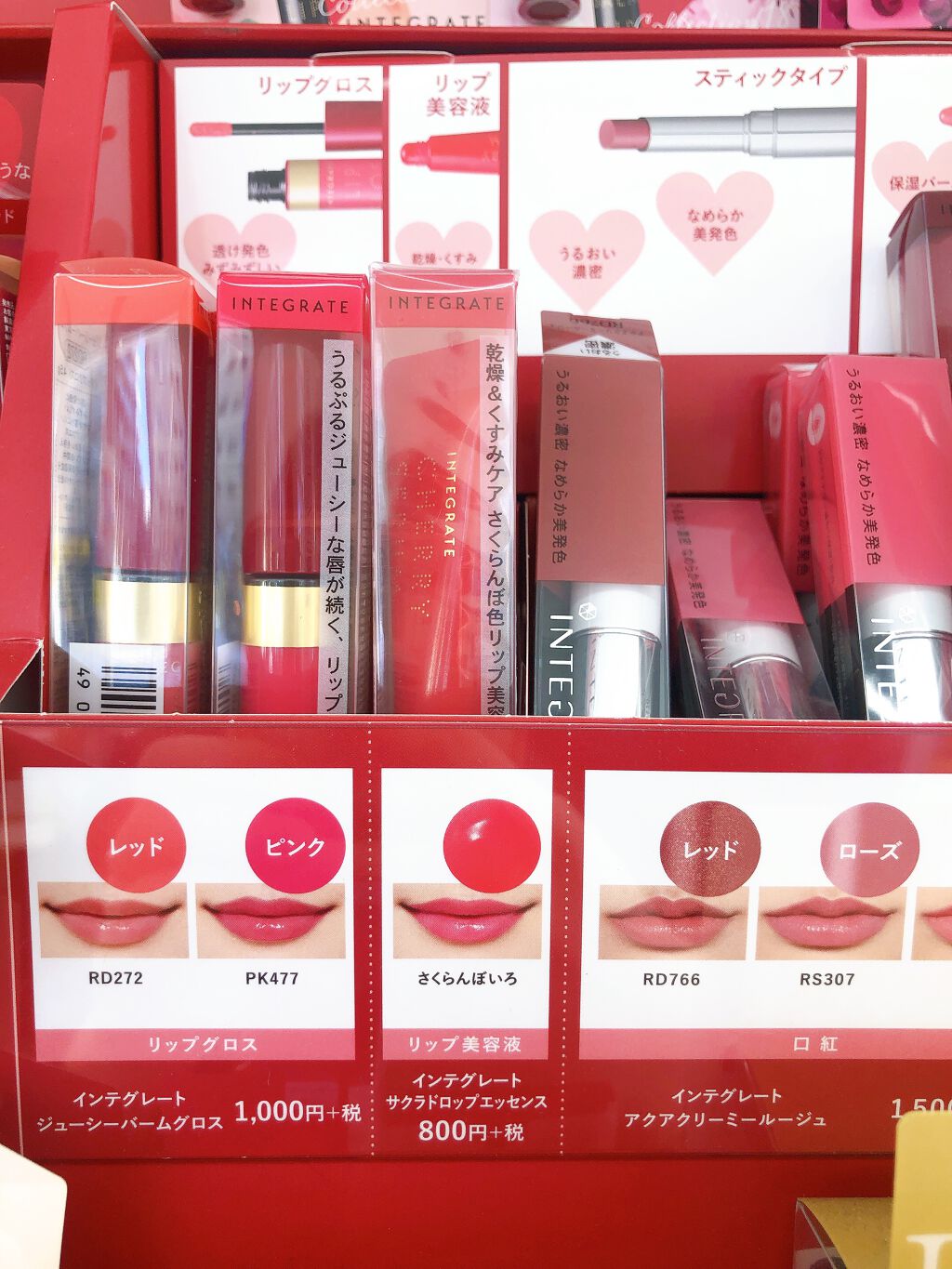 学生さんにオススメ!機能性抜群!無敵美少女リップ‼︎✴︎インテグレート サクラドロップエッセンス✴︎欲しい機能が全部詰まった無敵リップです!○特徴・SPF18・PA++⇦十分な紫外線対策!・高保湿、美容液効果⇦うるおい効果成分 ジンジャーエキス、ブチレングリコール、ヒアルロン酸Na配合しっかり保湿できて乾燥しらず!・くすみ補正効果⇦透明感のあるクリアカラーで、唇の色味を自然に補正。学校や職場、デートにも使える万能カラー♡さくらんぼ色とさくら色の2色展開。・チューブタイプ(ここ大事!)⇦摩擦ゼロで塗れて、衛生面もバッチリ!・グロス効果⇦普段使うリップの上から塗ると、一気にツヤツヤなフルーツ飴のような仕上がりに!もちろんこれ一本で仕上げてもOK!・プチプラ!880円(税込)⇦何と言ってもこの安さ!学生さんでも手の届くお値段!ちょっと周りの子と差をつけたい子にオススメこのリップ、ほんとうに悪いところが見つからないぐらい、機能性も見た目も仕上がりも完璧なリップです!。私の使っているカラーはさくらんぼ色🍒今は、パッケージもさらに可愛くリニューアルされています。ちゅるんと可愛い美少女リップが手に入りますので、気になった方は是非試してみてくださいね♡ここまで読んで下さりありがとうございました。m(__)m