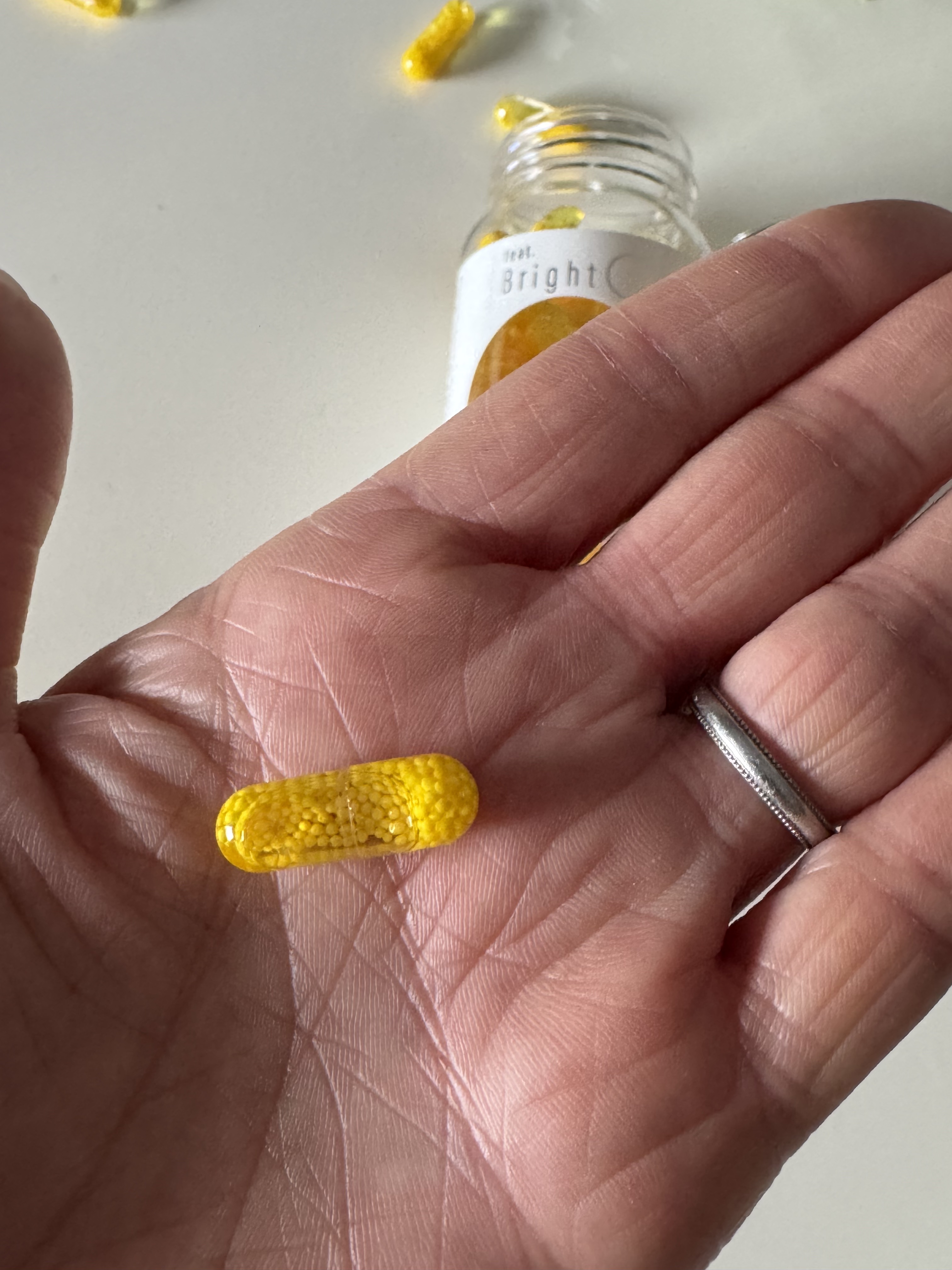 feat.BrightCを飲んでみたんですが、カプセルなのでサッと飲めて楽でした。気軽さがあります。ビタミンCを意識して摂っているというだけで、ちょっと生活が整っている気分になります。あくまで自分の気持ちの話です。続けやすいところも気に入っています。カプセルは思っていたより飲みやすかったです。