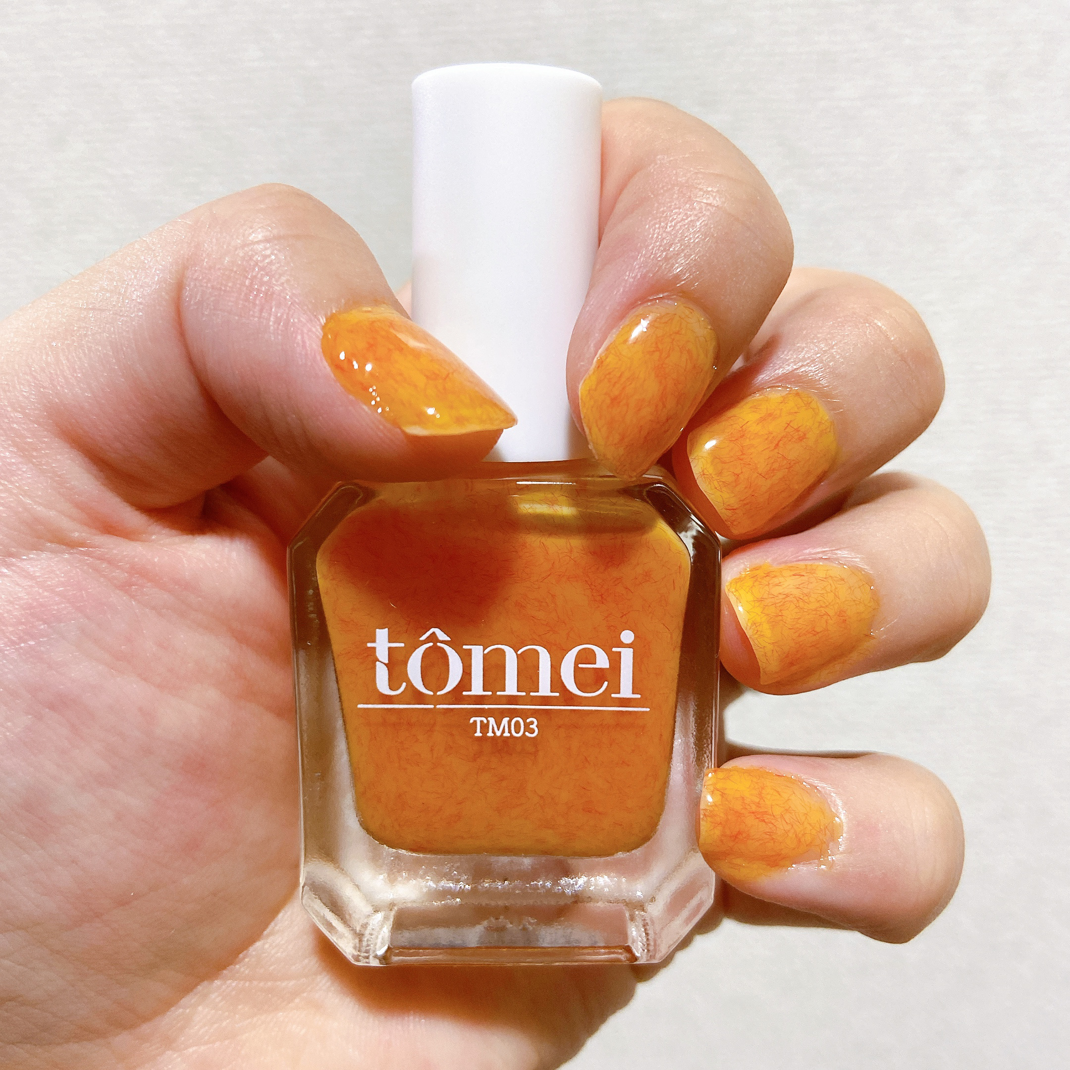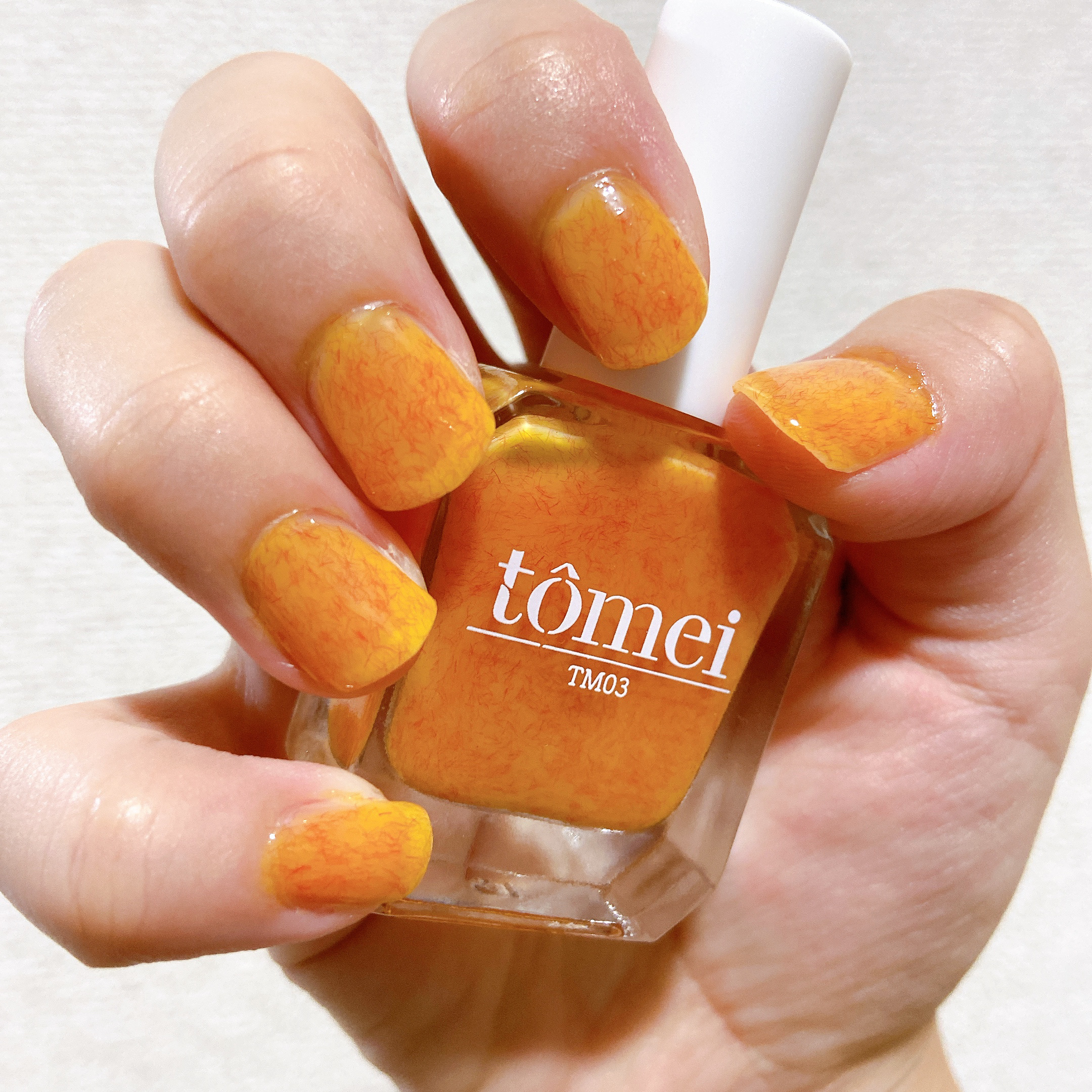 tomeiファイバージュレネイルTM03 マンゴーラッシー🥭コスメのアウトレットショップアエナで一目惚れして買ったネイル💅✨このtomeiシリーズのネイル買うの初めてなんですが、一時流行ってた桃の繊維みたいなのが入ってるデザインで可愛いです🍑こちらはベースのビビッドなオレンジのカラーに赤い繊維が入ってて、まさにカラー名の「マンゴーラッシー」っていうのがぴったりなカラーですね🥭鮮やかなカラーなので夏にもピッタリ☀️一方でオレンジと赤という組み合わせの奇抜さもあるので、中々オシャレ上級者カラーでもあるなと感じました😅私には少し使いこなすのが難しいかも💦1度塗りだと自爪が透けるくらい薄づきなので、好みや気分によって塗り重ねる回数を使い分けるといいかも❣️ハケも塗りやすかったです🌟アエナで一個200円位で安かったしもう一色買っちゃいました☺️(LIPS上では¥979となってるから定価はそれ位かも)もう1色も過去にレビューしていて、この投稿に紐付けしてるので、よかったらそちらもぜひ見てください🙌#海映えラメネイル