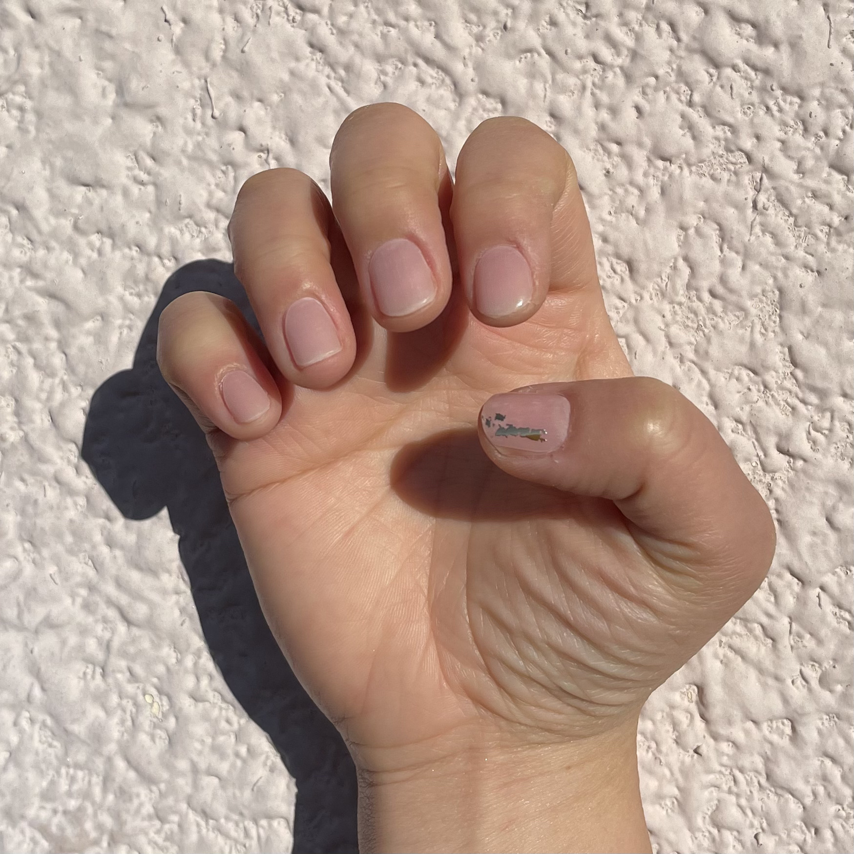話題のDAISO生ジェルネイルシール試してみました!#DAISO#ダイソー#ジェルネイルシール#ハンド#B貼って硬化するタイプのジェルネイルシールがダイソーから出てたので購入してみました!開けてみたらパッケージよりも全然ピンク感が無くてちゅるんとピンクを期待してたのでちょっと残念😭シールは厚めでふにふにしてて削りづらいし爪から浮きやすかったです🥲上からトップジェル塗ったらなんとかなったけど仕上がりがシール貼りました感すごく出てて百均だけど300円商品だから、もうちょっと良いものを期待してしまっていたので残念でした(;;)今のところ皿洗いしたり髪洗ったりしても剥がれてこないので、わりと持ちはいいかもしれません!ぜひ購入時の参考になれば嬉しいです〜!◎#正直レビュー