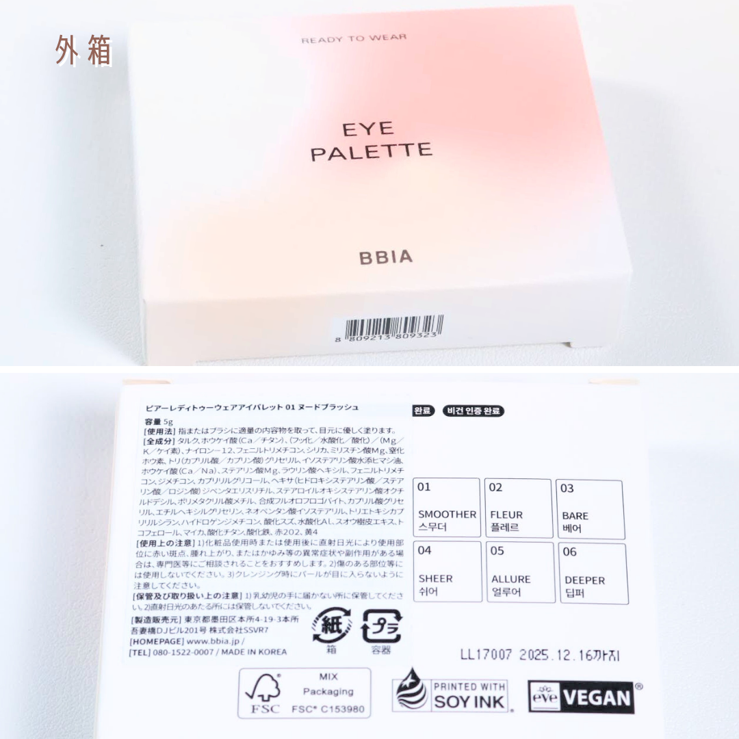 ヌーディーカラーできちんと感!//ピアーレディトゥーウェアアイパレット01ヌードブラッシュ|BBIA・ω・*)ノнёιιο!先月とはうって変わって、祝日の無い6月は、世の中がすっかりお仕事モード。そんなときだからこそ、今回は平日メイクに役立つアイシャドウをご紹介しようと思います。ブログでベスコスとして紹介したり、他の媒体で紹介していたりと、昨年から個人的に推しているアイテムです♪しかし、インスタ&LIPSではまだ単品紹介していなかったようで……(もう、したつもりでした)orz汎用性の高いアイテムですし、販売終了になる前にみなさんに共有したいと思います♪✼••┈┈••✼••┈┈••✼⿴⿻⿸特徴⿴⿻⿸BBIA(ピアー)の「ピアーレディトゥーウェアアイパレット」は、その名のとおりヌーディーなカラーが特徴の、“基本に忠実”なアイシャドウです。今回使った01番の「ヌードブラッシュ」は、肌になじみやすいベージュ系カラーが揃ったパレット。入っているのは、次の6色です。・スムーザー:ミルキーなクリームアイボリー・フルール:ライトトーンのヌードピンク・ベアー:ピーチトーンのピンクシマーパール・シアー:モブトーンのオパールシマーパール・アルーア:ミッドトーンのモブブラウン・ディーパー:ディープソフトブラウンまるで素肌のままでいるかのように仕上がるマットカラー4色と、ほのかに輝くグリッター2色で、自然な陰影をつくってくれます。実はほかにもカラーがあり、現在全8色展開(2025年6月時点)。公式サイトにカラーチャートがあるので、色選びに迷う場合はパーソナルカラーに応じて選ぶこともできます。【春】01・05【夏】04※・06【秋】02・03・07【冬】04※・08※04は夏と冬のニュートラル公式サイトによると、これらの各パレットは低刺激のテスト済みとのこと。BBIAは韓国コスメのなかでもプチプラで購入できるブランドなので、チャレンジしやすいのではないでしょうか♪_φ(..)メモメモ▼公式サイト価格1,600円(税込)✼••┈┈••✼••┈┈••✼⿴⿻⿸使用感⿴⿻⿸実際に使ってみると、アイシャドウの粉質は、韓国コスメの中では比較的サラサラなタイプだと感じました。しっかり色が乗るかとはじめは少し心配でしたが、目元に使うと肌に溶け込むような発色。自然になじんでくれたように思います!色は、割と見た目の印象のままです。一度塗りでは、ふんわりとナチュラルに色づくタイプのアイシャドウでした。なにより、しっかり塗っても派手になりすぎない点が使いやすいなと思っています。韓国コスメは、多色パレットのグリッターも割と輝度が高くて華やかな傾向にあると思うのですが、このパレットはグリッターの粒子が細かくて、とても繊細な印象がありました。ひとことで特徴をあらわすなら、「かなり控えめ」です。派手さは皆無なのに、この絶妙なカラーのおかげで不思議と今っぽい雰囲気が演出できました。平日、ちょっとスーパーに立ち寄る……なんてときも「え、どこ行くの?」みたいにならない、日常に溶け込むカラーです。感覚的に「あ、こういう色は日本人が好きそう!^^」という印象が。“韓国コスメ=派手”なイメージがあって嫌煙していた方や、盛り耐性に自信の無い方、メイクが苦手という方も使いやすいと思います!ちなみに、陰影もつけやすいので、グラデーションもキレイに仕上がります。安いものでも良いので、ブラシ塗りがおすすめです♪写真は簡単に横割りのグラデーションなのですが、縦割りの方が今風な雰囲気になると思います。ベーシックなカラーでありながらも、トレンド感のある目元に仕上がりますよ!ぜひ、参考にしてみてくださいね〜*˙︶˙*)ノ゙マタネー#レディトゥーウェアアイパレット#BBIA#アイシャドウ#アイシャドウパレット#韓国アイシャドウ#多色アイシャドウ#ヌーディーカラー#アイメイク#イエベ春#使用感#コスメスウォッチ#コスメ好き#コスメオタク#美容ライター#美容垢#コスメコンシェルジュ#コスメがわかるハッシュタグ#美容好きさんと繋がりたい#コスメ好きさんと繋がりたい#メイク好きさんと繋がりたい#購入品#PRじゃないやつ✼••┈┈••✼••┈┈••✼Instagram:whitelily_twinkleLIPS:whitelily_twinkleONEcosme:WhiteLily*スウォッチある方フォロバします!気づいていないときは、コメントでお声かけてください♪✼••┈┈••✼••┈┈••✼