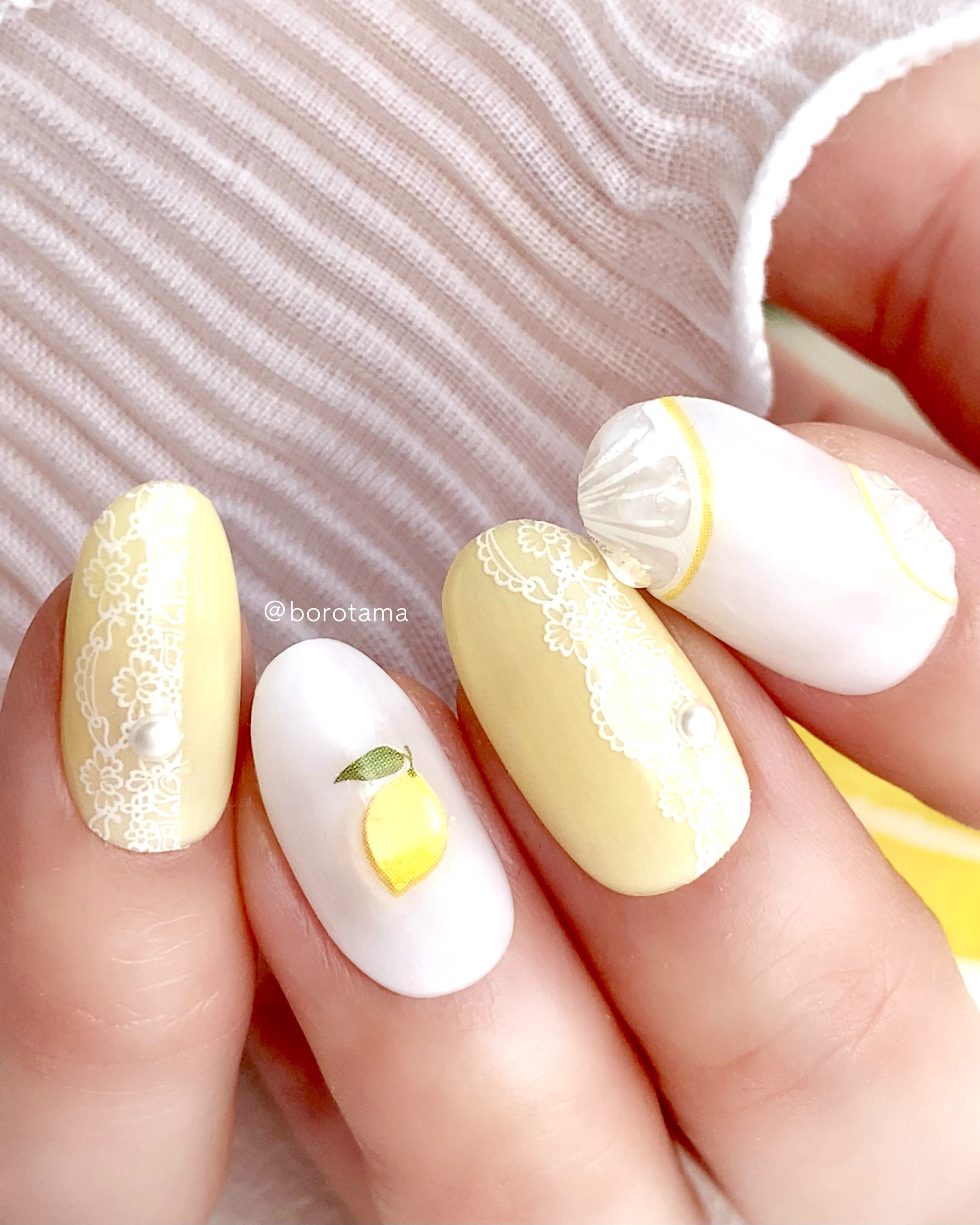 プチプラで作る檸檬ネイル🍋DAISOのネイルシールとSeria・キャンドゥのジェルを使って檸檬ネイルをつくってみました🍋それだけだと少し寂しかったのでSHEINで購入したレースのシールも使っています😊プチプラで材料も揃うのでぜひ試してみてください〜💛⚠今日はジェルネイルなので作るのには専用のライトなどが必要です!私はDAISOのネイルチップに作ってます********************♡使ったもの♡♡#DAISO(#ダイソー)各110円(税込)・ネイルシールレモンJAN:4550480777146・ジェルネイル10ホワイト♡#Seria(#セリア)各110円(税込)・ベース&トップジェル・ノンワイプトップジェル♡#キャンドゥ各110円(税込)・パルカラージェル(ミモザ)・パルハードラインジェルJANコード4965412251371♡#SHEIN・レースのネイルシール296円(税込)商品ID:31805311********************♡作り方♡作り方は画像を参考に📸①ベースジェルを塗り硬化する②好きなカラーを塗り硬化する(薄ければ繰り返す)③ノンワイプトップコートを塗り硬化する💡ノンワイプトップコートを塗ることでシールがくっつきやすくなります④シールを貼り付ける⑤ノンワイプトップコートを塗り硬化する⑥ハードラインジェルで檸檬のつぶつぶの部分を盛って硬化すれば完成✦💡高さが足りなければ何回か繰り返すと○********************自分で檸檬を手描きするのは大変だけどネイルシールだと簡単にできるから嬉しい✨注意点は今日使ったネイルシールはちょっと貼り付けにくいタイプ(すぐに浮いてくる😢)だったのでしっかり貼り付けたあとノンワイプトップコートで埋めてしまうのが○マニキュアだとちょっと貼りづらいタイプだったのが残念💦ぷっくり感をだしているクリアジェルはSeriaなどからも出ていますがキャンドゥのハードラインジェルがボトルからすぐに使えて細かい操作もしやすいからお気に入り😉SHEINのレースのネイルシールも色んなカラーに合わせやすくて単色ネイルだと寂しいか…ってときにすごく便利ですよ!個人的には塗りムラになりにくいキャンメイクのファンデーションカラーズとかと組み合わせると手軽に可愛くなってオススメです💓チェックしてみてね!#ネイル#セルフネイル#100均ネイル#プチプラネイル#簡単ネイル#セルフネイル初心者#レモンネイル#柑橘ネイル#フルーツネイル#シトラスネイル#ネイルデザイン#ネイル記録