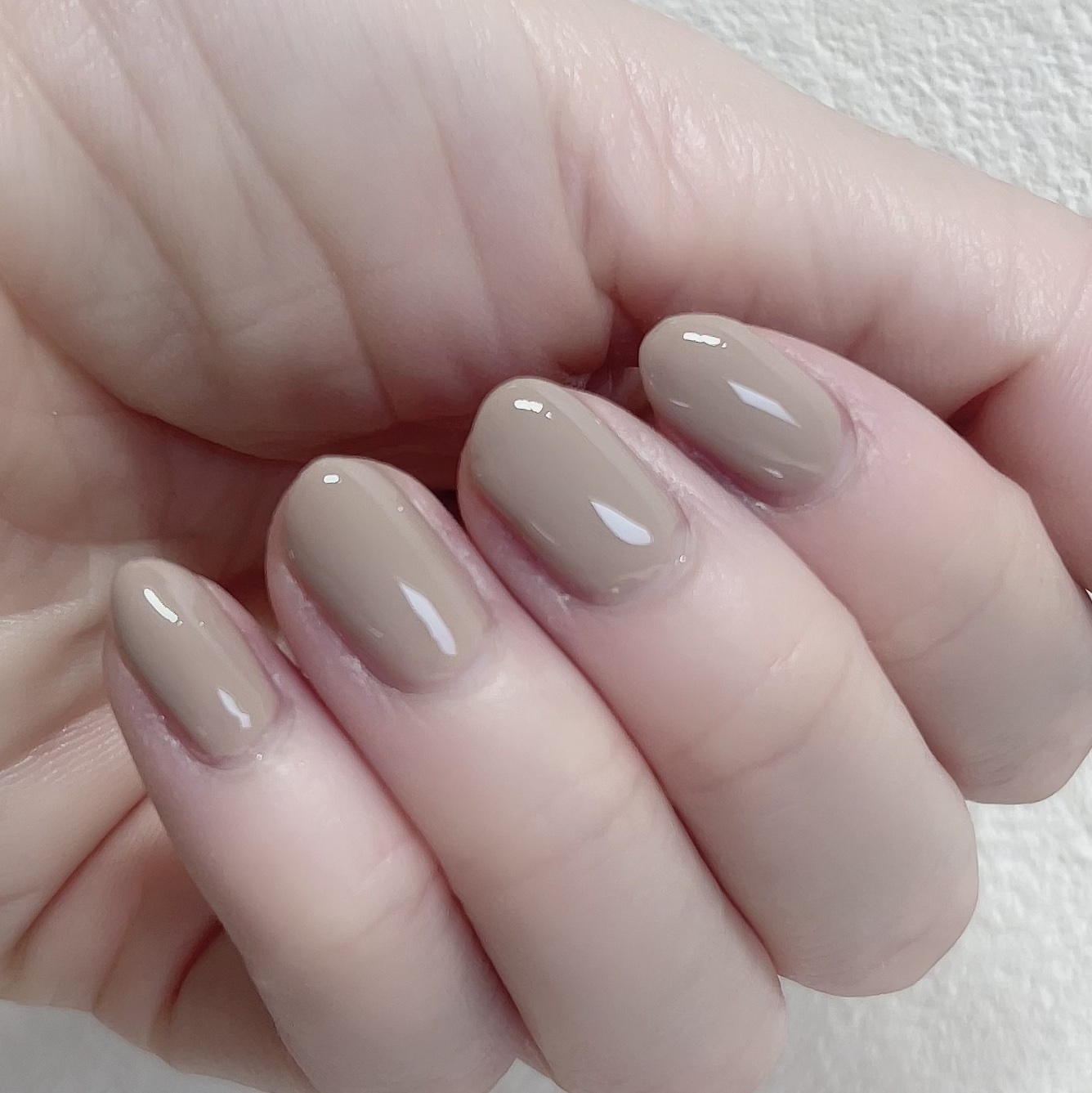 カフェラテのようなまろやかなカラー🥰 肌なじみも良いし合わせやすくてかなり良かった!◎ どんなシーンでも使いやすそう。 こういう色味ほんと好みでした! ジェルトップコートで仕上げて更にちゅるんちゅるん😚