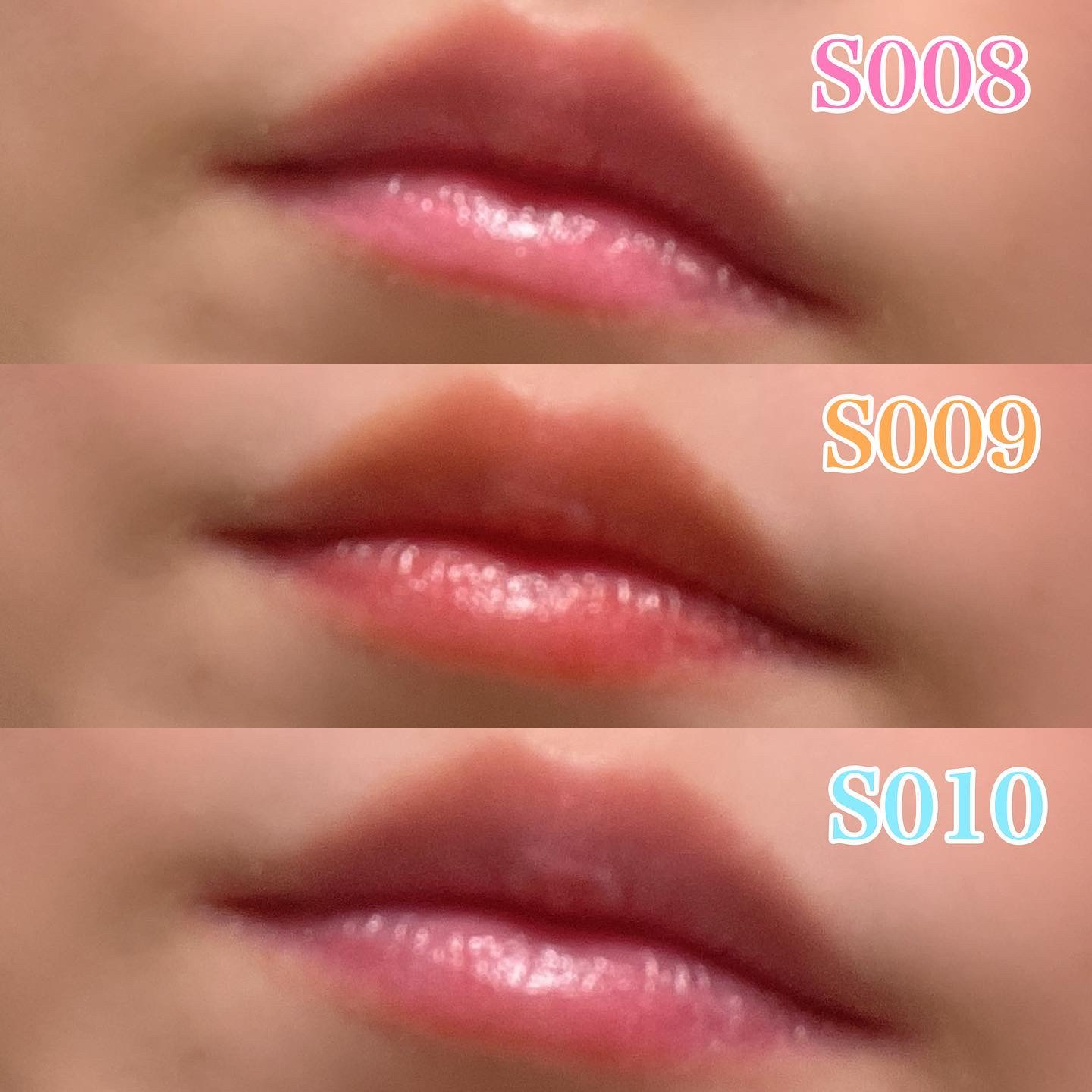 S008はピュアな可愛さペールベイビーピンク S009は普通じゃつまらないヌードレモン S010は透明感のおまじないヌードミント シンプルで高級感のある高見えパケにミラー付きで機能面も良過ぎる🥹💓 色味だけじゃなくて塗ったあとにベタつかずうるおうみずみずしいつけ心地もお気に入り。ストックしたい。