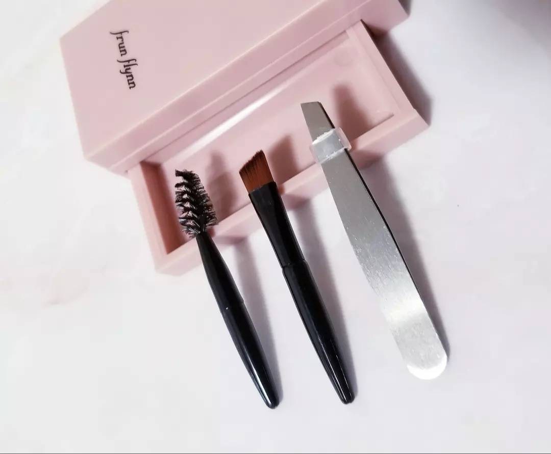 frunflynnは、タイと日本の共同企画ブランド。 プチプラなのに粉質が良く、肌なじみがよいなめらかでマットな質感。 03は、ほんのり血色感がありふんわり垢抜け眉が簡単に完成しますよ! 下の段は引き出しになっていて、アイブロウブラシ・スクリューブラシ・ツウィザーが入っています。こういう形状は初めてだったのですが、めちゃくちゃ良い⭕️