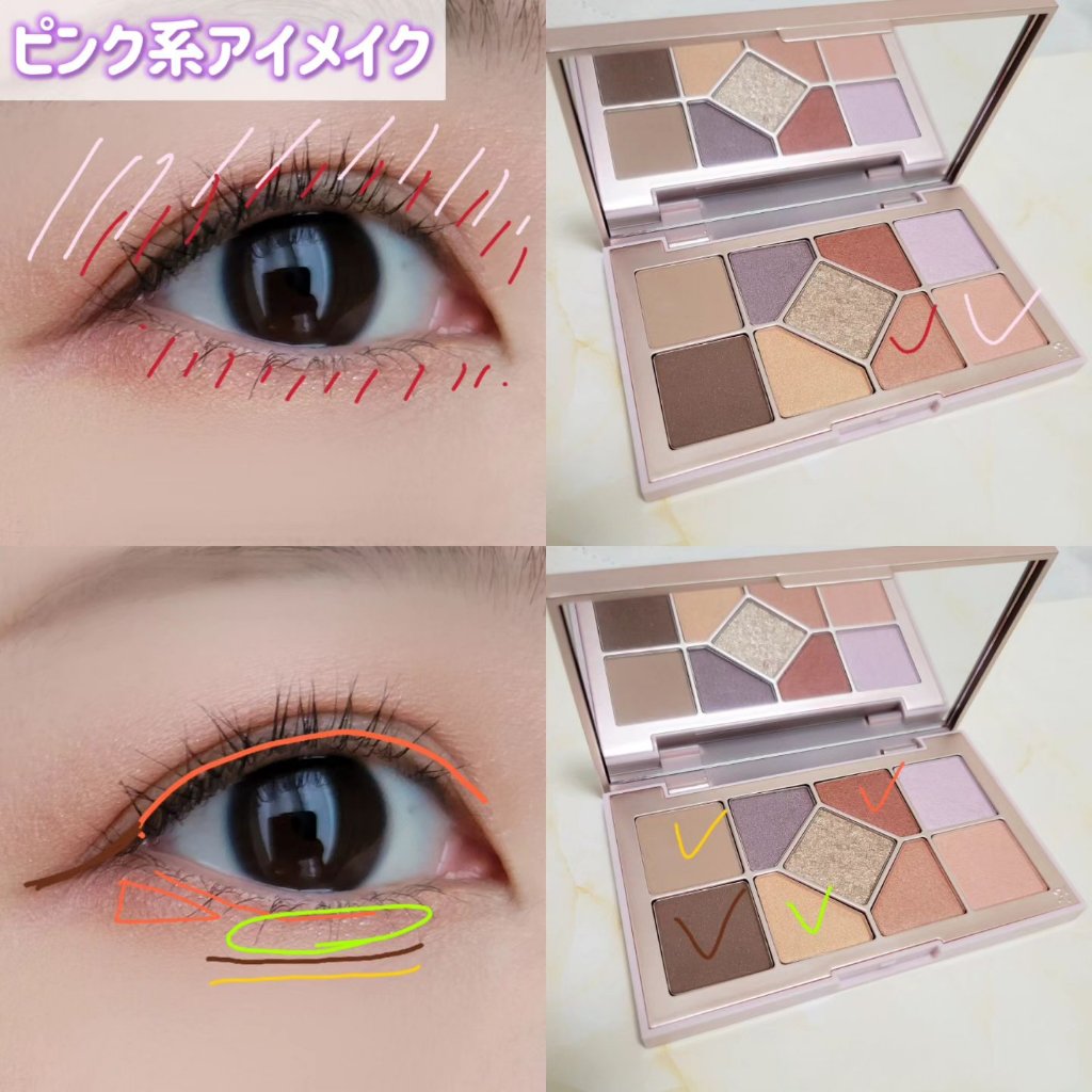 先に言っちゃうけど、本当に可愛過ぎてやばい... これなんと2420円なのよね、お買い得すぎない🥺❓ 特に気に入ったのは01 の朝焼けに染まるピンクの湖! 今の時期にぴったりな温かみのあるピンクが 目元をパッと明るく見せてくれて、多幸感あふれる かわいいメイクができちゃいます👏 肌に染み込むような密着感があり、ザクザクラメも しっかり夜まで長持ちしてくれるから大満足😆 フラッシュを炊いたときの輝きが心躍ったので テクスチャーショットを見てみてください🫶✨