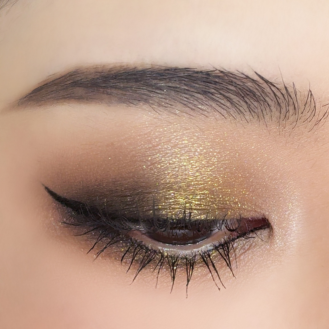 M・A・Cコネクトインカラー【アンフィルタード ヌーズ】黄みをメインにしたナチュラルメイク🥰💕 マスタードブラウンをメインにゴールドラメを上から重ねました✨✨ 全体的にグラデーションになるように、二重幅からアイシャドウを乗せて、ブレンディングブラシで丁寧に上に向かってぼかしていく
