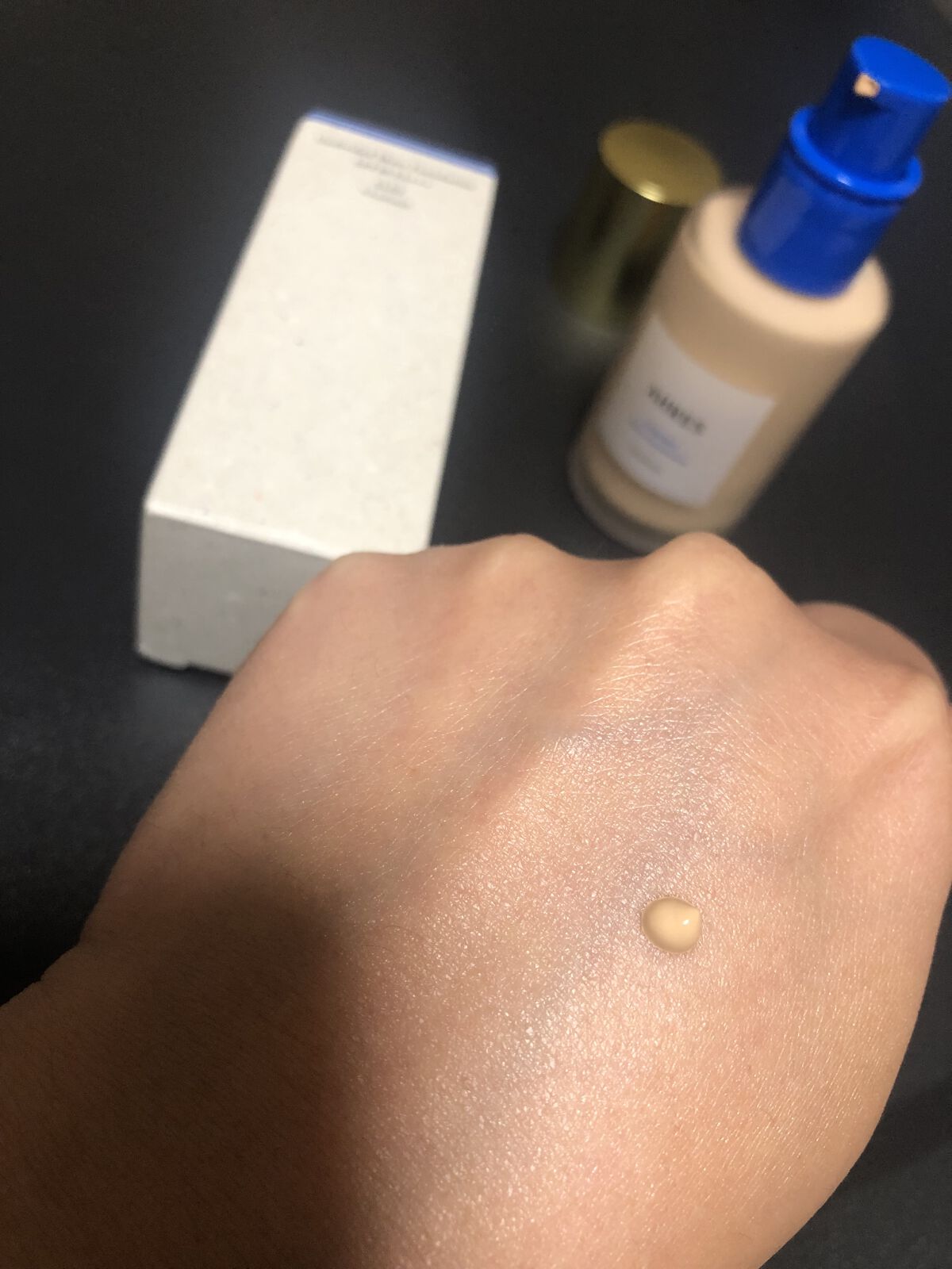 ファンデーションのベースは、水の代わりにハイビスカスの発酵液※を使用した美容液エマルジョンだそうです。 肌常在菌の多様性に着目した肌を育むうるおいケア処方です。 伸びがよくて、ピタッと密着感があり崩れにくかったです。 シアー感もツヤ感もあるナチュラルな仕上がりでした♥️ パッケージがシンプルで上品です✨ ゴールドのキャップを開けると、ブルーが鮮やかでオシャレです😆パール ポンプ式なので、使いたい量を調整しやすいです。 ふわーっと華やかで上品な香りです。 メイクしながら、土壌美容が叶う嬉しいリキッドファンデーションでした♥️