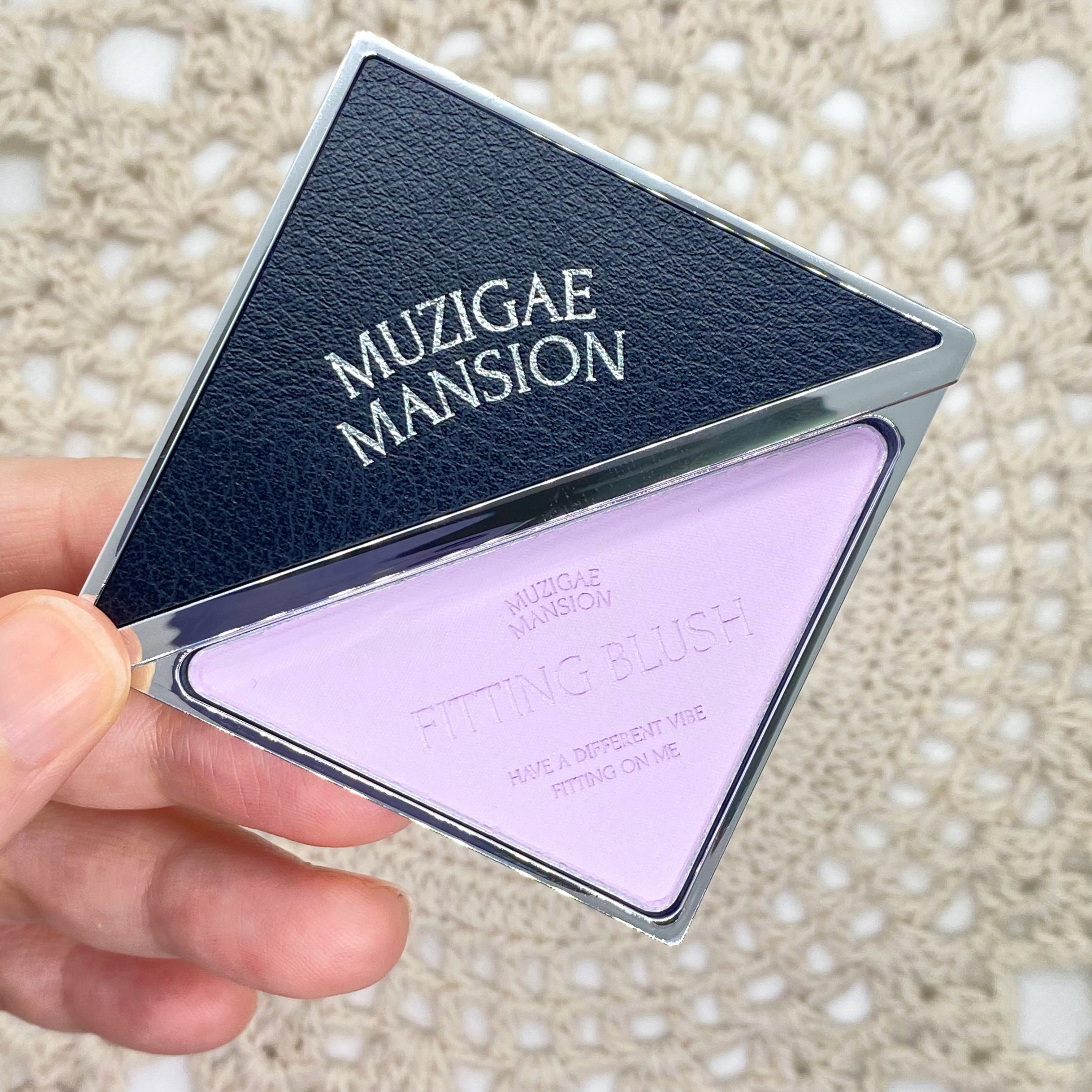 上品なラベンダーチーク🍇MUZIGAEMANSIONフィッティングブラッシュおしゃれなトライアングルパッケージのチーク✨レイヤリングしても濁らず発色して、ピュアでフレッシュなメイクアップルックを完成させることができます🫧スイングキャップを適用...