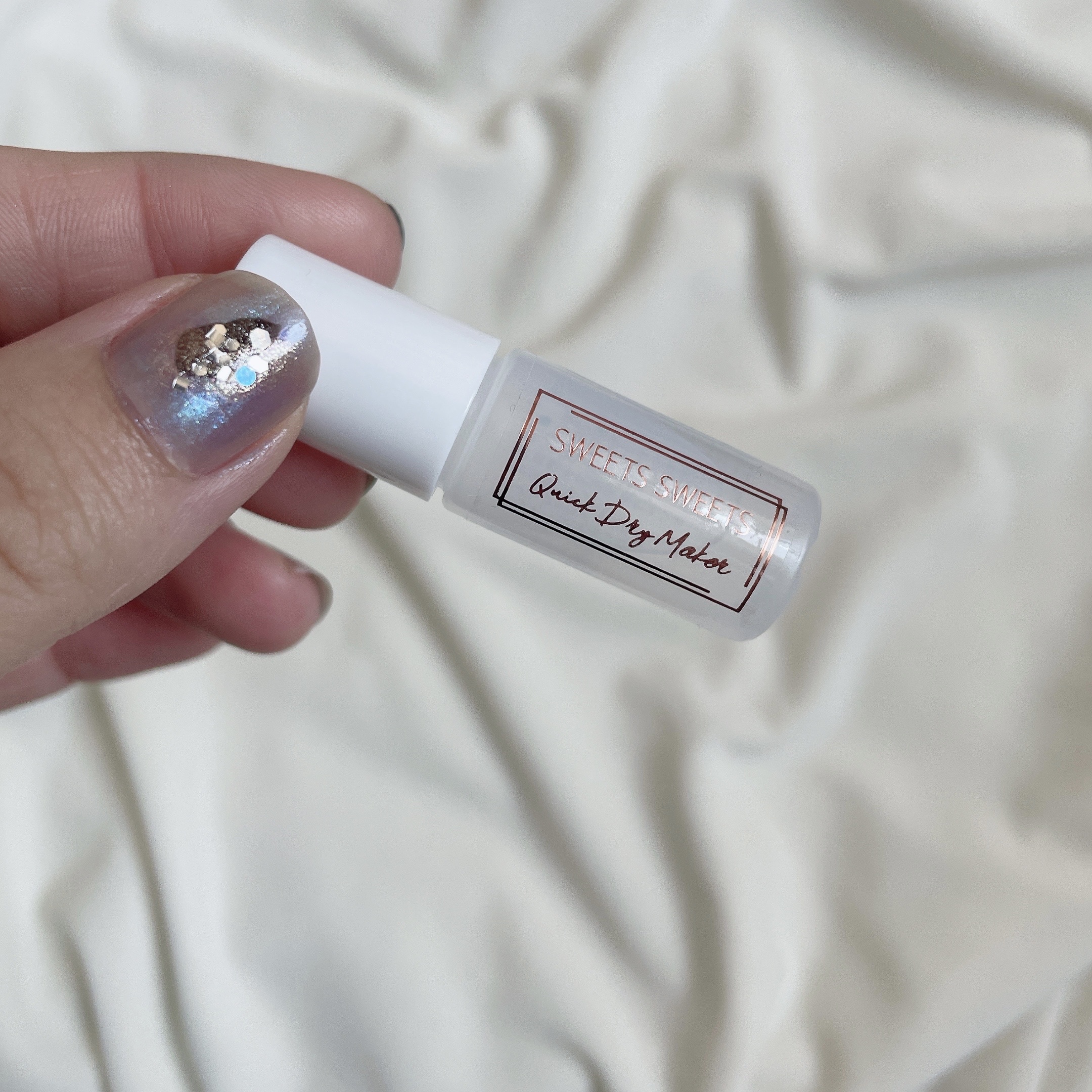 スウィーツ スウィーツクイックドライメーカー 本当によかったよ!!! いつも通りネイルをした後にトップコートの上から1滴💧ずつ垂らすだけで、すぐ乾きます。 これは本当にQOL爆上がりでびっくりしました🤯 セルフネイルをする人は必需品だと思います。
