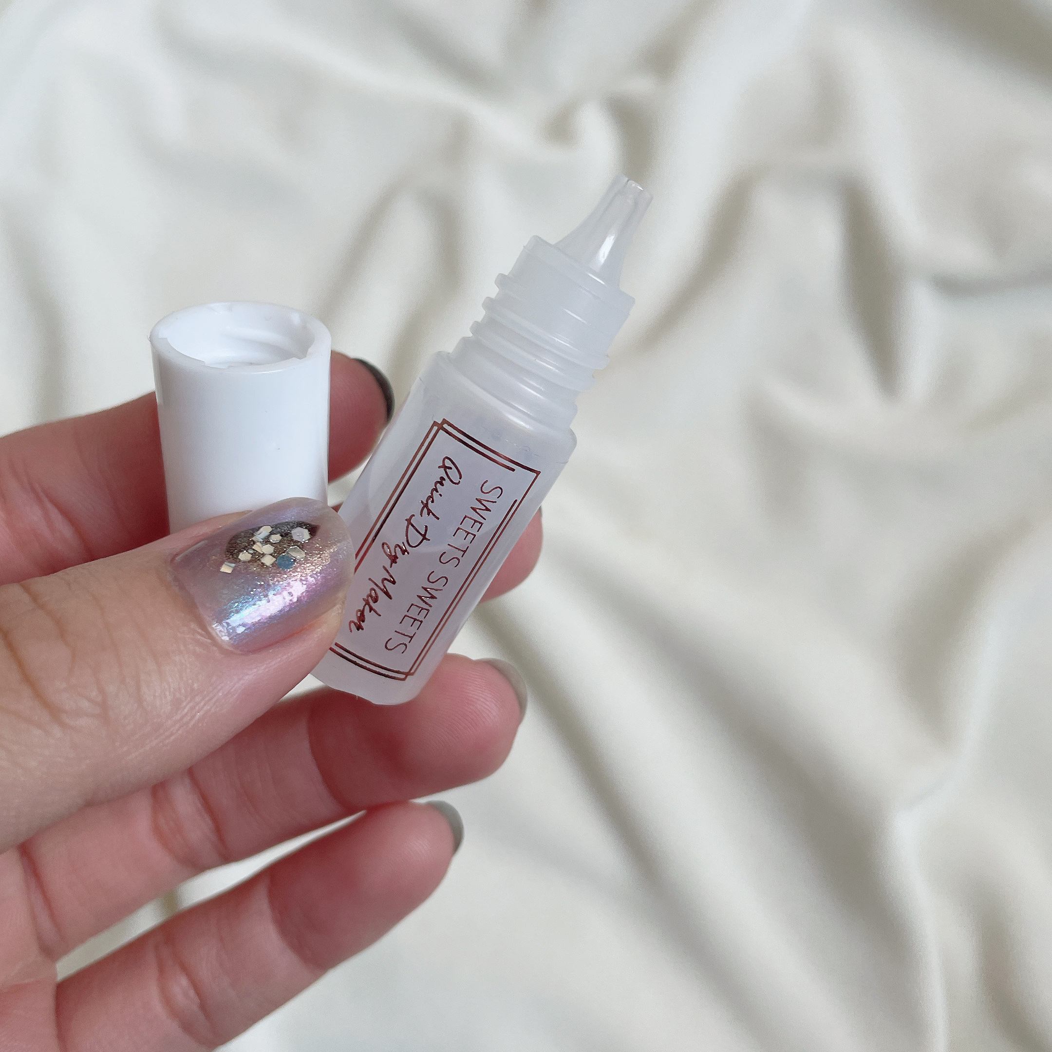 スウィーツスウィーツクイックドライメーカーこれを垂らすと非常に早く爪が乾くため、ぶつけてヨレるストレスから解放されます。ただし、つけるタイミングや量によってはポリッシュの表面感がやや劣化する感じがあります。