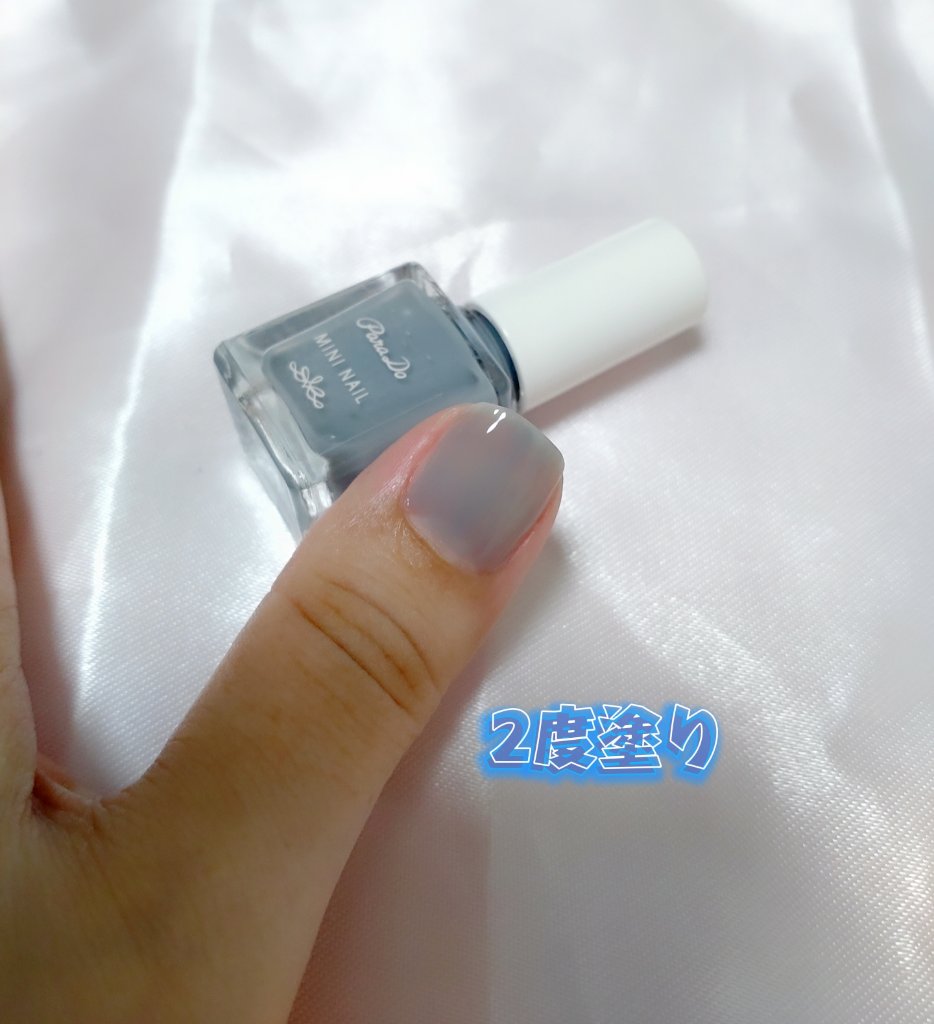 アマオトソーダはシアー感のあるブルーグレーって感じです✨ ハケは塗りやすい❣️ 乾きも早い方(*^^*) 3度塗りしちゃうと結構重めカラーになるので2度塗りでシアーが残るのがお気に入り(*´◒`*)