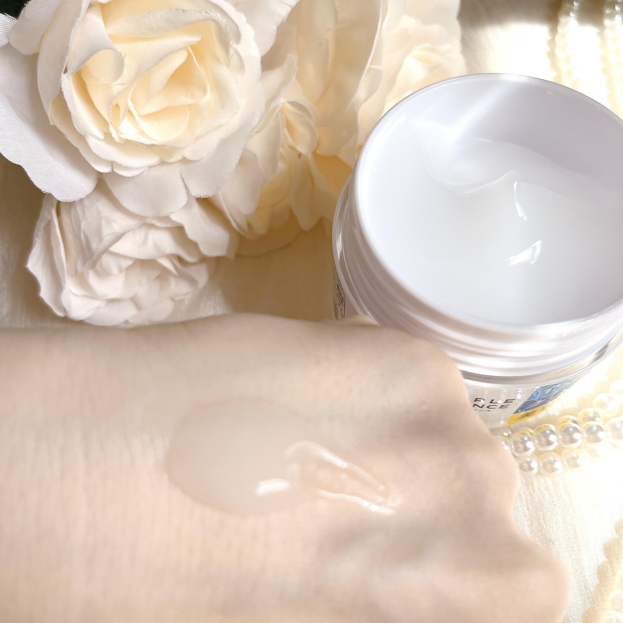 やや乳白色でとろみのある柔らかいジェル状のテクスチャー 肌にのせるとスーッとなじむ使い心地 重ね付けしても重くなくて軽い付け心地 暑くなる今からの季節に使いやすいと感じました。 アルコールフリー、無香料、無着色、無鉱物油 合成着色料フリー、合成香料フリーが嬉しいポイント!!