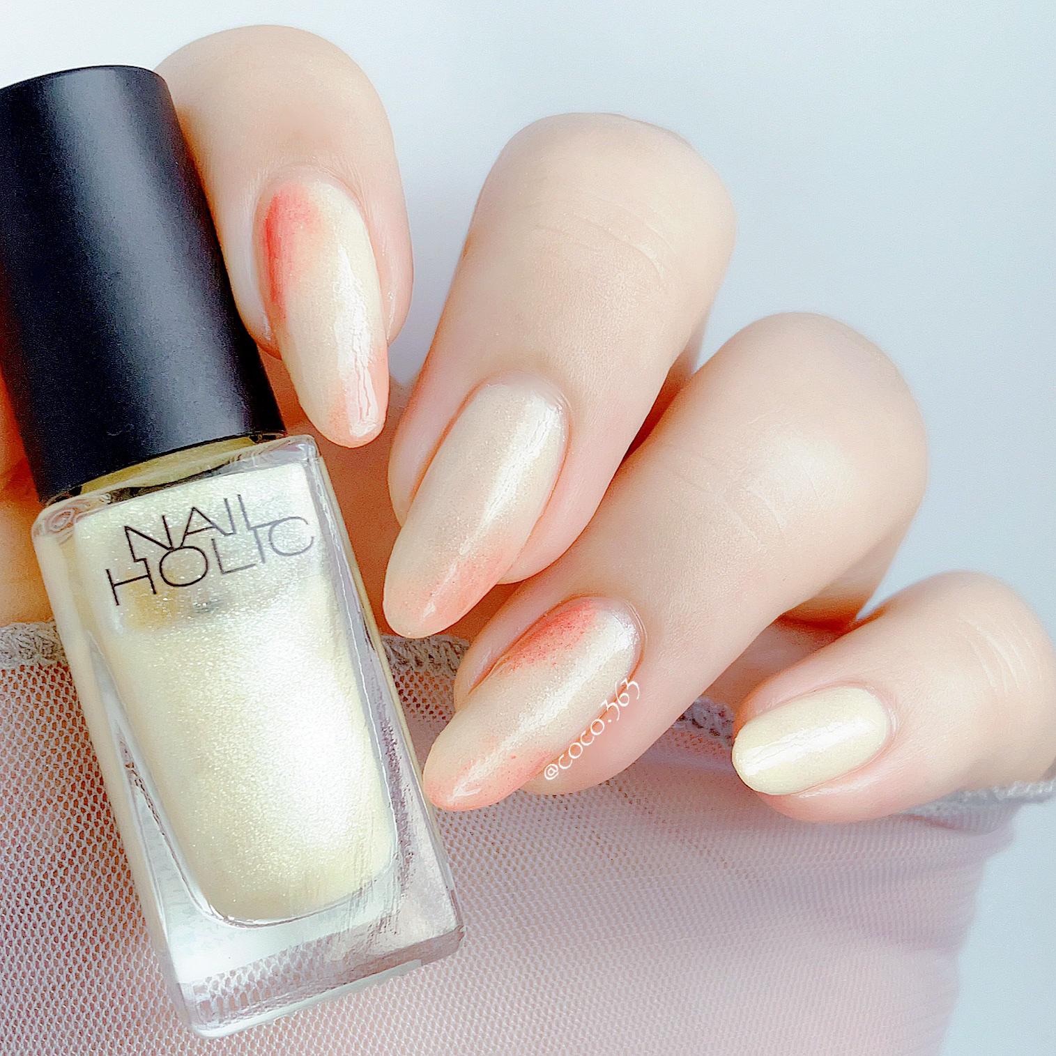 スポンジで仕上げると余分な液もつきにくいので乾きも速く時短に👌🏻 スポンジつける量は少量を少しムラになる感じで仕上げるとよりリアルな感じになります🍑 ̖́- ネイルホリック カスタムジェラート ¥396 〚RD419 トマト〛 ネイルホリック フローズンシュガー ¥396 〚YE561〛 ネイルホリック Milky color ¥330 〚PK831〛