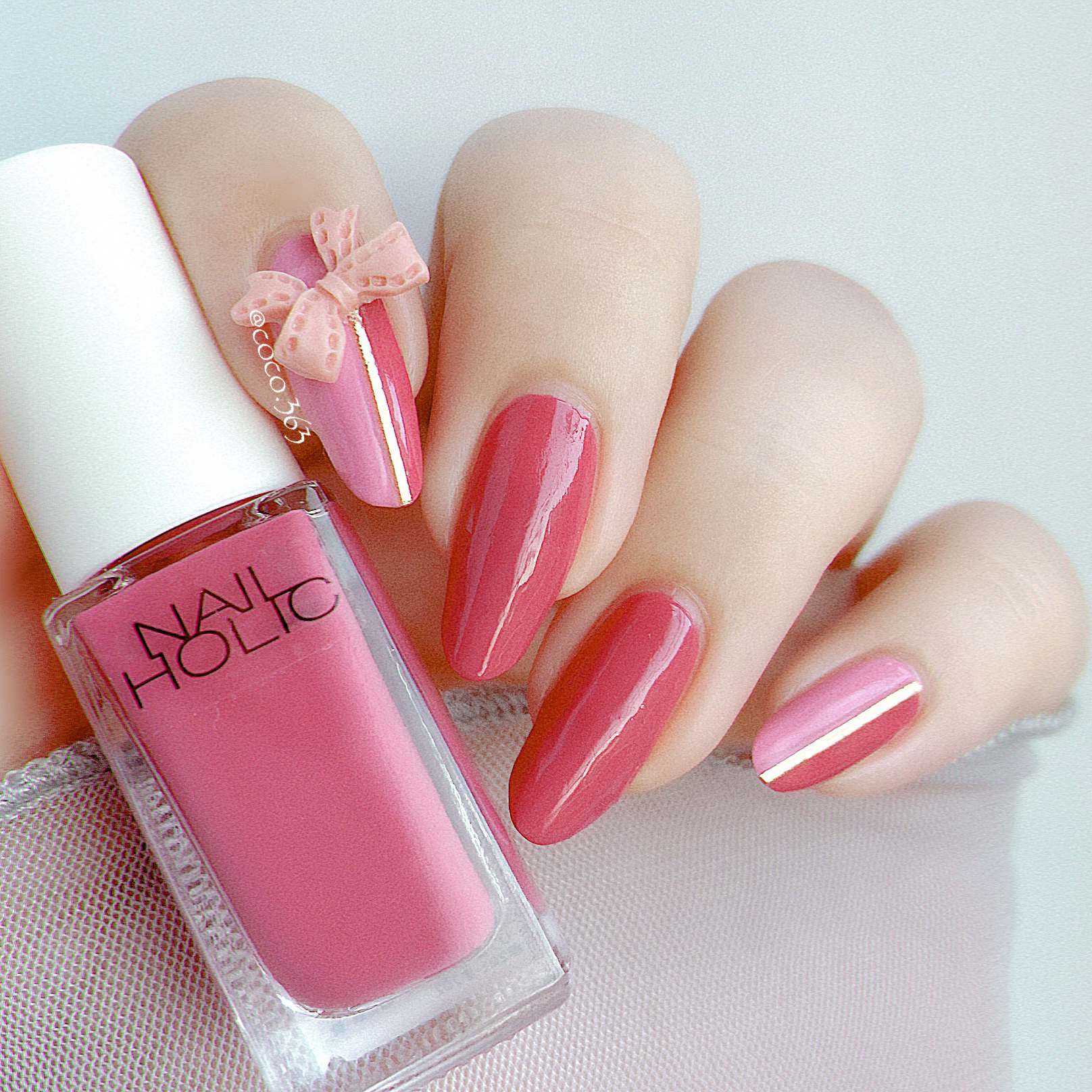 ネイルホリックネイルホリックリミテッドカラーカスタムジェラートストロベリーカシスとSHEINで購入したネイルシールでのネイル💅ネイルは2度塗りでアクセントにシール貼るだけで華やか&白が爽やかさを🩷𓈒𓂃❤️𓂃𓈒ネイルって色んな組み合わせで表情が...
