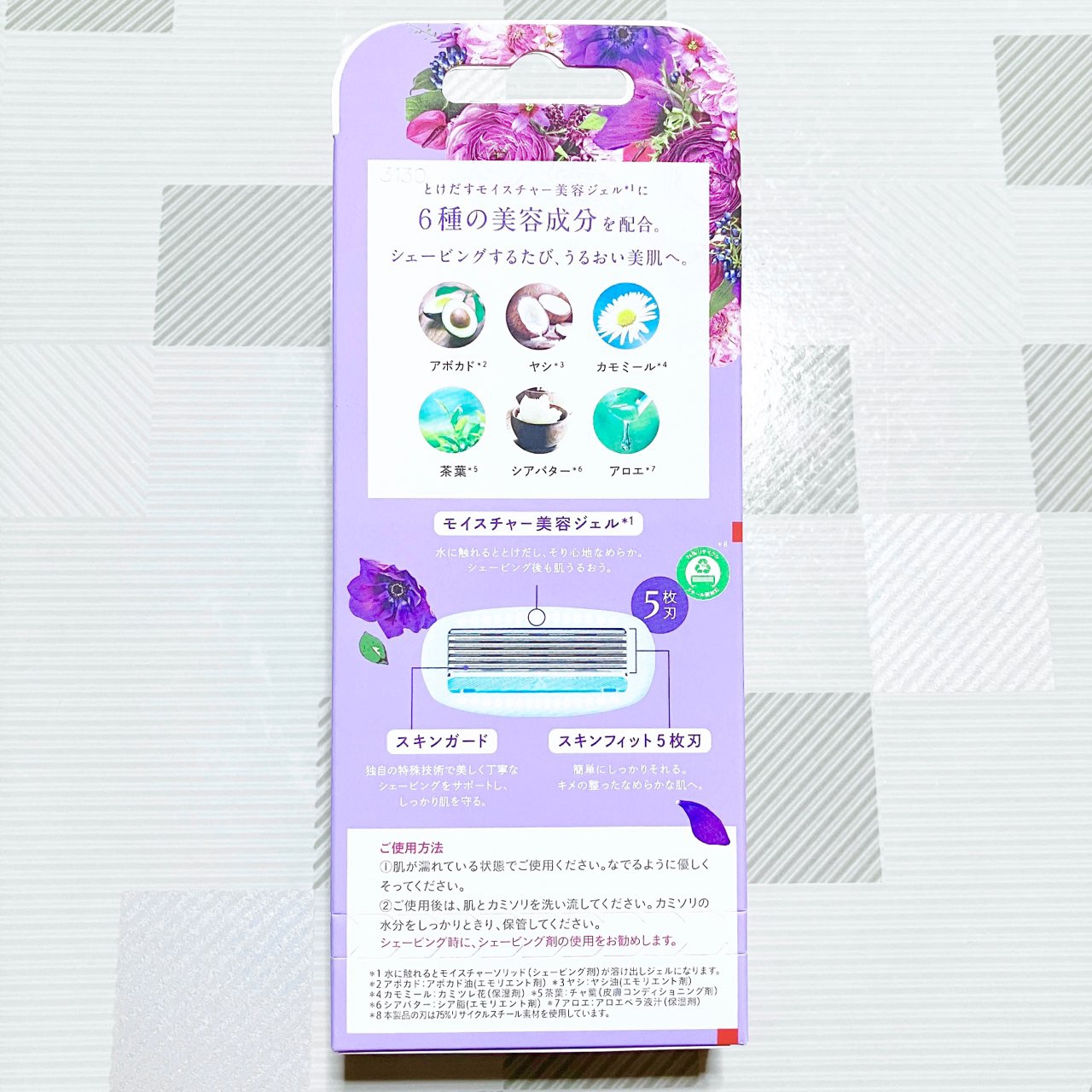 お花好きにはたまらない 上品なパッケージの 限定デザイン ジェル付きで剃った後も お肌が乾燥しにくいのと ピタッと肌にフィットする構造だから 処理がしやすいの‼︎ 夏場も常にツルスベボディを 目指してる方にオススメー💐