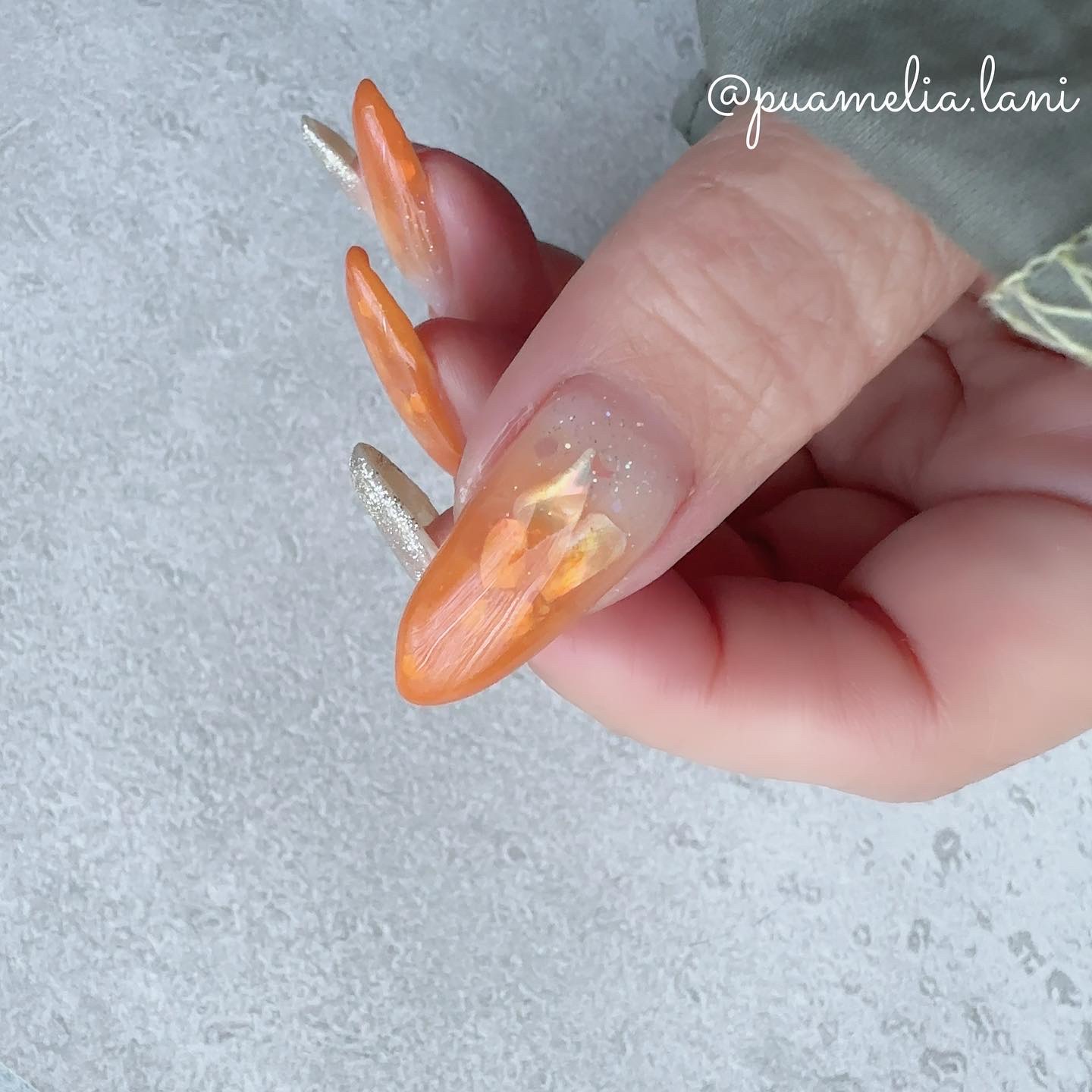 - みずみずしいオレンジは、明るすぎないクリアカラーで、夏らしい指先を演出します。
