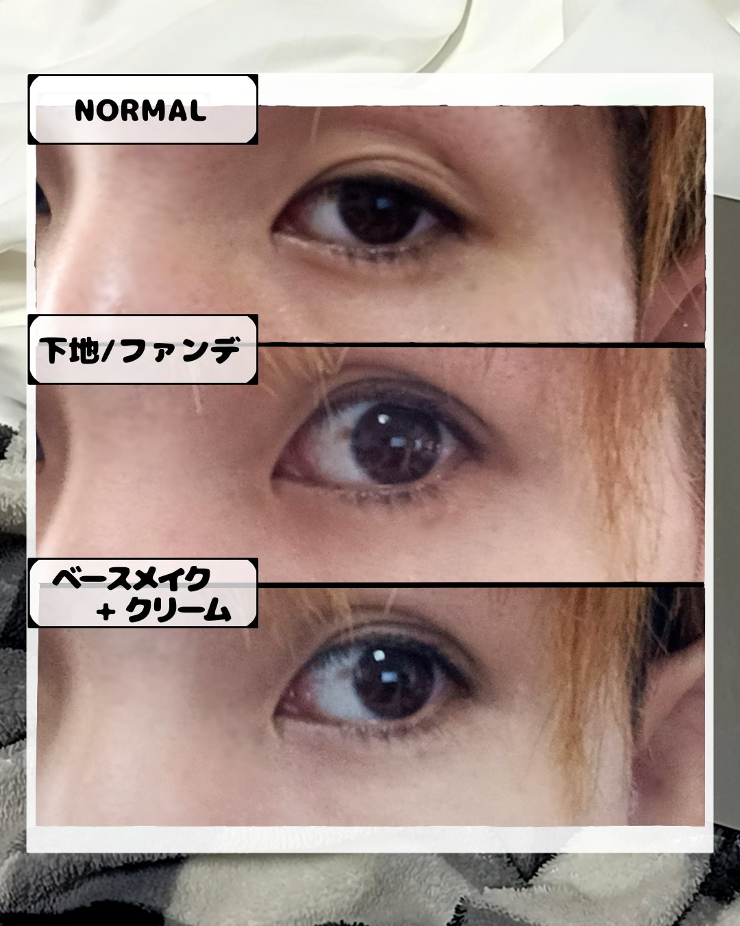 苦手は卒業!!でも隠す/コンシーラー苦手。厚塗りゴテゴテ、伸ばしすぎて無意味とか本当に何使っても上手くいかないでもクマとゴルゴ線は隠したい。Eyelenolクマカバーアイクリーム02アイレノールS全3色01アイレノールは20号・薄めのクマ向け02アイレノールSは21-23号・濃めのクマ向け03アイレノールDは23-25号・酷いクマ向け☑︎目元のクマカバーと美白シワケア同時に☑︎クマだけじゃなく黒ずみ、シミにも◯☑︎カバー、光沢、潤いを同時に☑︎落ちにくいからヨレも気になりにくいクリームなんです。テクスチャーが緩い!!!肌馴染みがいいのにしっかりクリームの色が残る。控えめポンポンでクマと肌をグラデーションにして伸ばすイメージ。クリームなのに本当に落ちにくいからヨレないです!!画像はわかりやすいように下地無し下地→クリーム→ファンデの順でやったらもっと綺麗に仕上がります☺︎アイクリームぺぺっと塗る感覚だから時短!!全く難しくないです。コンシーラー苦手民はぜひ使ってみてー!!#Eyelenol#クマカバーアイクリーム#クマ隠し#美肌#新シーズンあか抜け計画