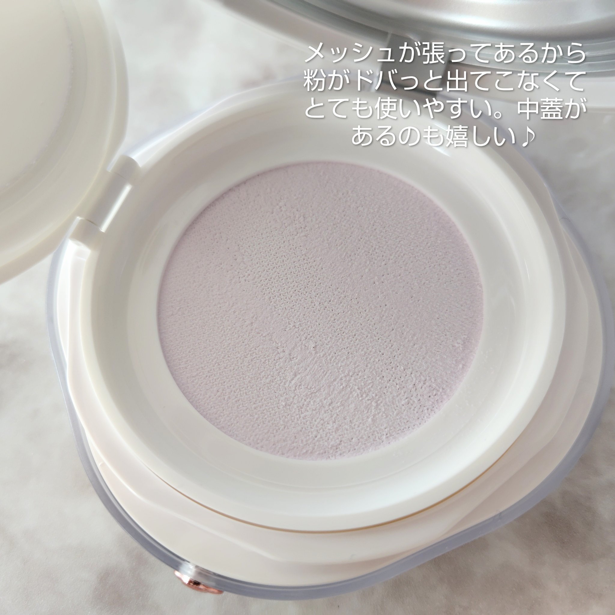 透明感アップしてくすみを飛ばしてくれます⤴️ パフが分厚くて使い心地良いです✨ 粉質は指で触るとシャリャリいうくらい細かい🤌 とにかく肌がNARSのリフ粉使った後みたいにサラッサラになるので崩したくない時に使用していました‼️
