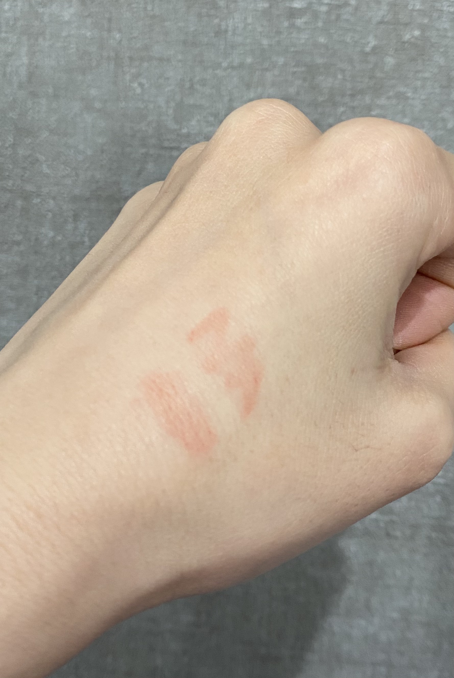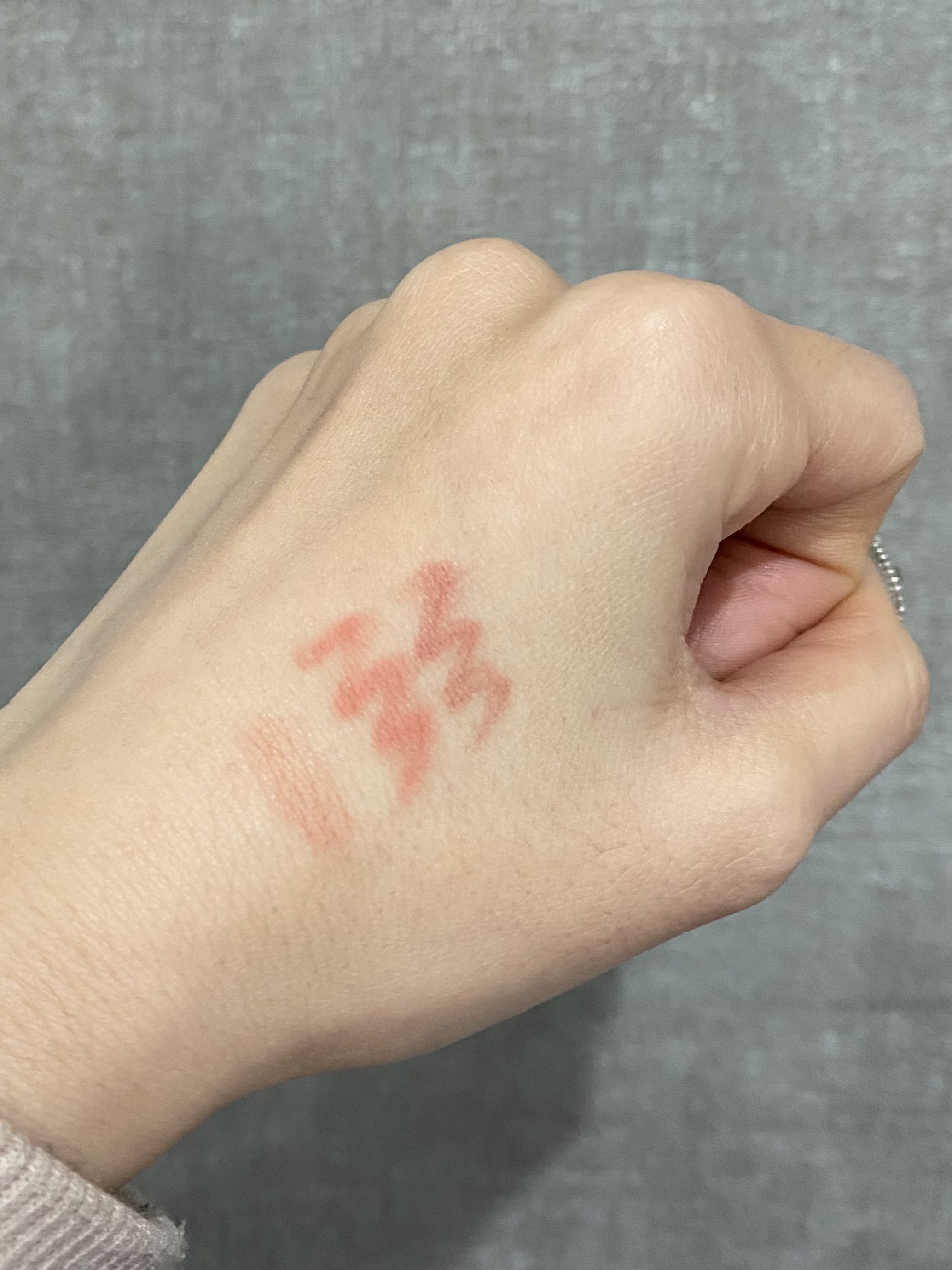 02ベージュのみ購入しようとしていたのですが、試しに01ピンクもスウォッチしてみたら青みが強くなく、明るいピンクで可愛いカラーだったので、こちらも購入することに。 ペン先が太めで、オーバーリップなどやり易いと思いました。 柔らかくスルスル描けるのも◎ また、発色がいいのでくすみがカバーされ、こすってもよれず、色持ちが良かったです。