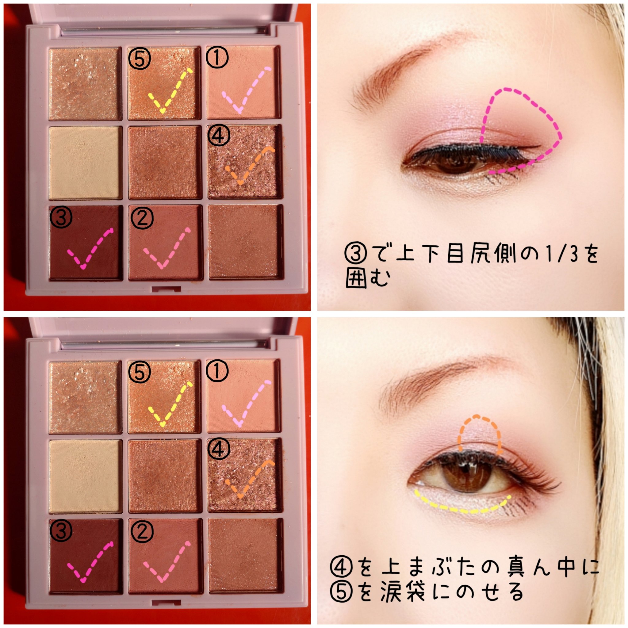 本日のアイシャドウ♡#ÉtoileRose#9色アイシャドウ01ピンクマカロンこちらは、以前#Cherrygirl ちゃんからプレゼントしてもらったものです❤️1二重幅まで2まぶた広めに32のうえからキラキラ〜4締色として目尻に5下まつ毛のキワにこの配色は可愛すぎます❤️そして使いやすい発色!!しっかり発色、でも馴染みがよい✨このÉtoileRoseのアイシャドウ他にも欲しくなってきてます(笑)